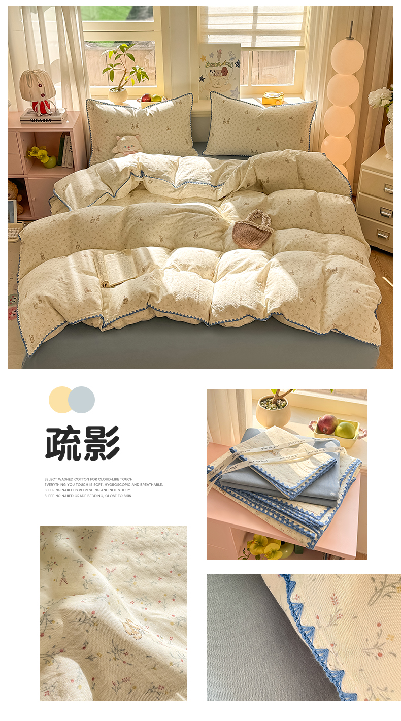 (总)对白 2026新款全棉纯棉色织水洗棉四件套-极简格子冰川孤岛系列,冰川小岛,海上孤岛