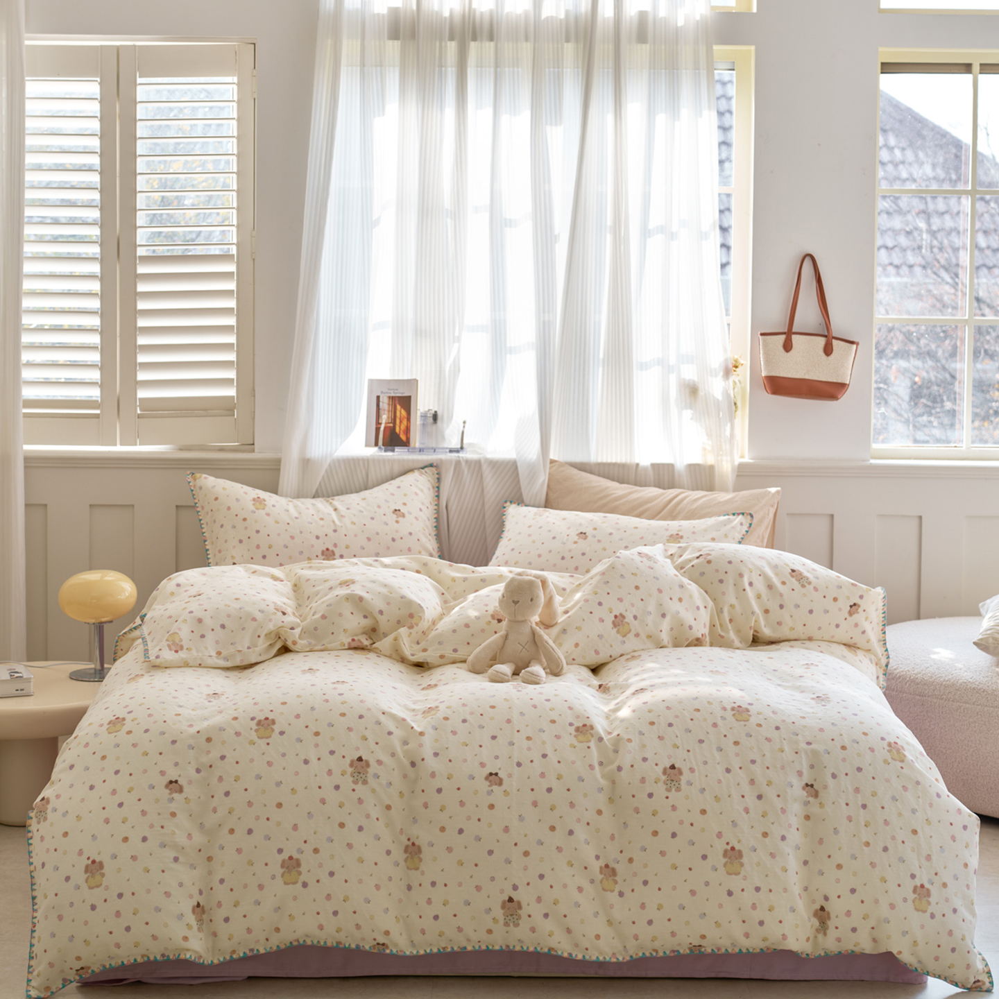 (总)洋铭区(原狠狠爱) 2026新款春季全棉彩边双层纱四件套,爱心宝莉,波斯小懒狗,繁花兔兔,格格小熊,海蓝小木马,红格小马,红枣小兔,花朵兔兔,焦糖小熊,兰花香,绿芽小马,萌宠小分队,奶茶蝴蝶结,奶糕熊熊,汽车派对,桃桃粉花,甜果小象,图图小狮子,幸运小可爱,熊猫嘟嘟,遇见粉花,月光宝宝