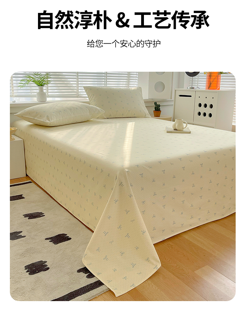 爱彼家纺 2026年新款全棉老粗布加厚加密高克重凉席席子;单床单花型更好卖,床单三件套 蝴蝶结