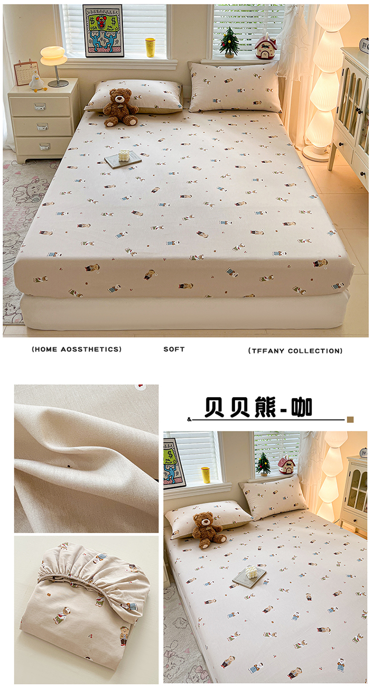 (总) 2025新款亲肤柔软100棉全棉印花单品床单床笠枕套,晚安小狗,豹纹小熊,潮牌小香,淡黄条纹,咖格樱桃-咖,奶油波点-米,气球派对,日系小熊猫,南瓜熊仔-咖,复古樱桃,铂尔曼-蓝,嗨皮小狗-粉,花团锦簇-紫,如梦花季-紫,舒芙蕾-红,婉秋,绣球花园-紫