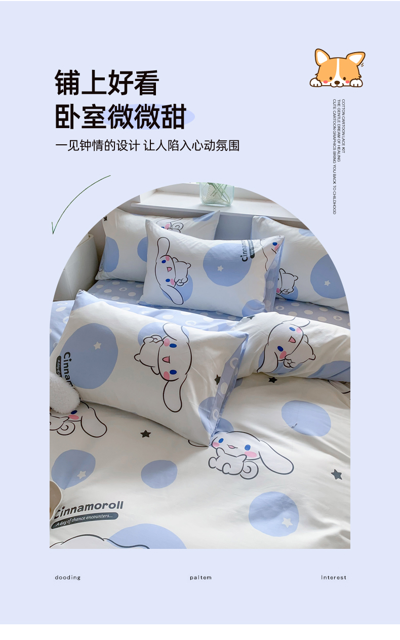 当前位置: 91家纺网 > 商品网购 > 床品套件 > 四件套 > 全棉普通四件套 > 玉元坊 2026新款正版授权三丽鸥系列全棉纯棉床单四件套学生三件套-大耳狗帕恰狗布丁狗系列 波点玉桂狗【简约款】
