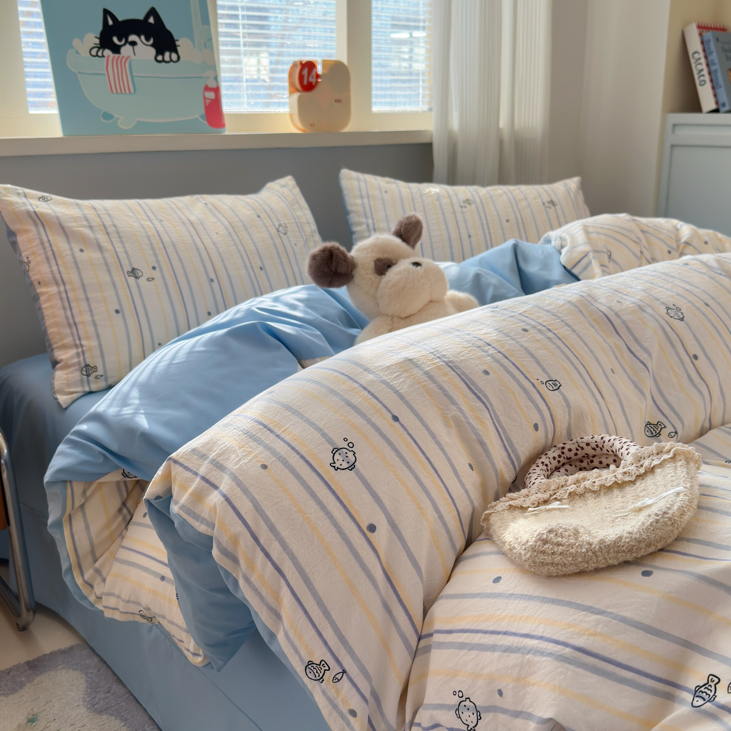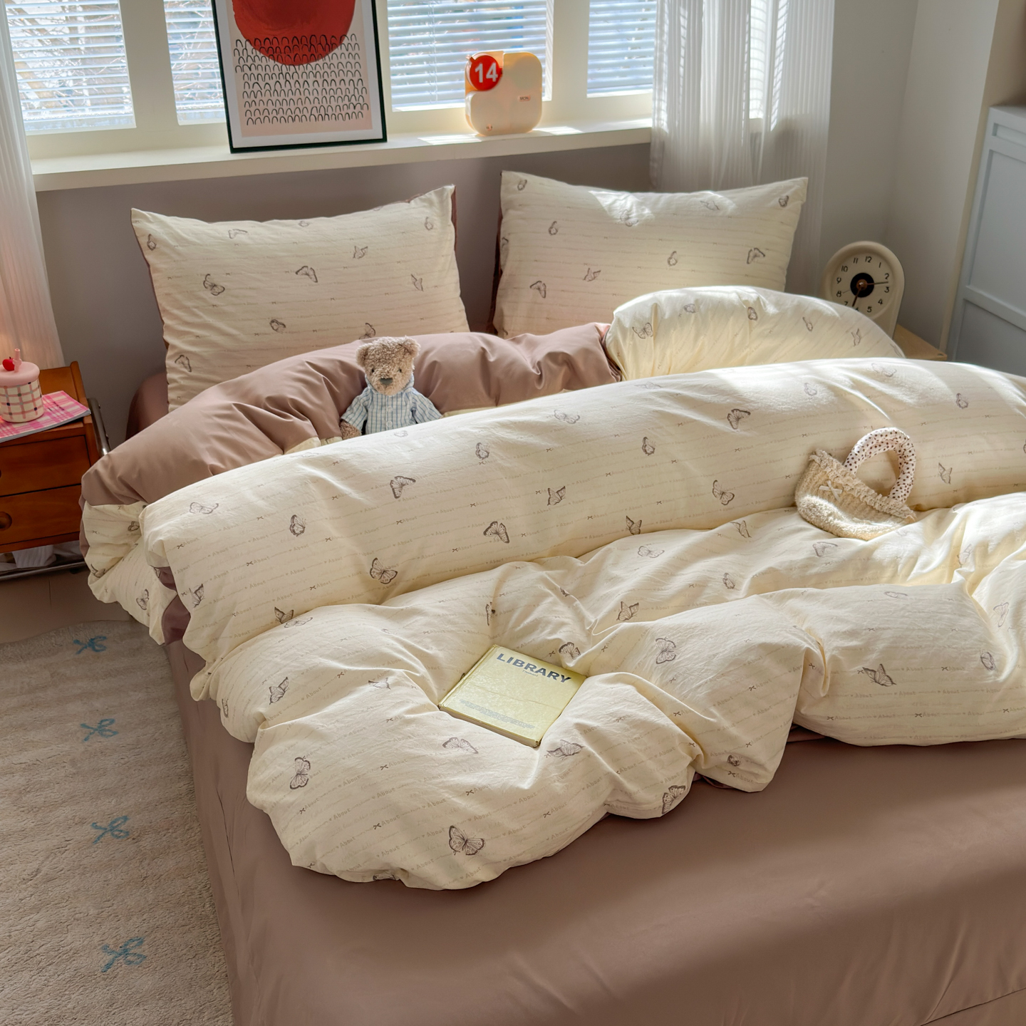 (总)德比尔斯 2026新款古法水洗仿棉云感棉小布袋四件套,波点气球,彩色心动,初见芭蕾,初夏,春日初恋,蝶舞飞,粉格KT猫,海边童话,蝴蝶结粉,灰条樱桃,蓝桉花,蜜恋樱桃,木马乐园,奶酪星宝,葡萄,七彩兔,童趣,兔小姐,小伙伴,阳光花园,樱川桃井,郁金花海,云瑶-紫,知秋
