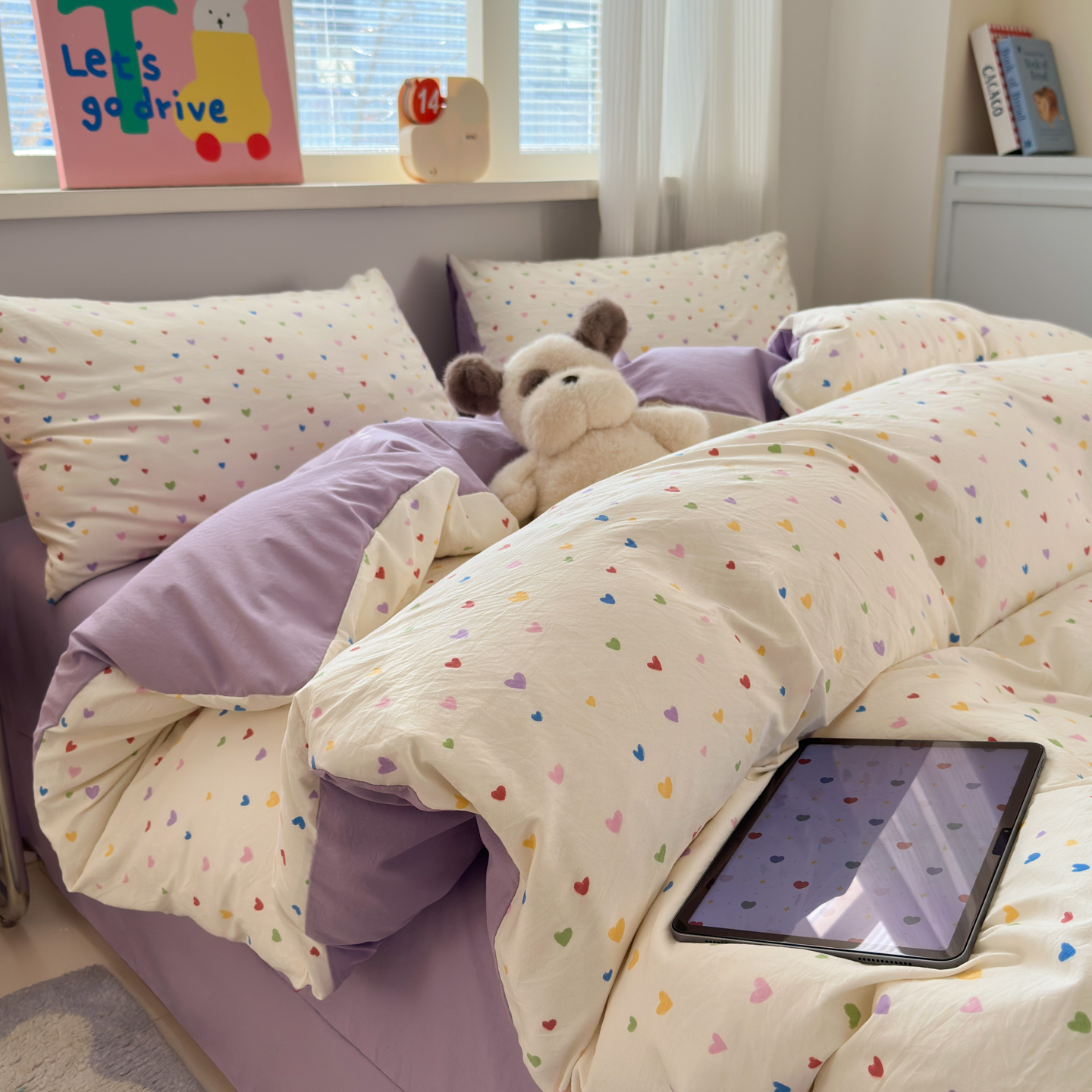 (总)德比尔斯 2025新款暗合印花牛奶绒四件套,爱心-紫,波点-紫,布朗尼,豆蔻-紫,粉格樱桃,蝴蝶结-灰,蝴蝶结-紫,七彩格,紫香草