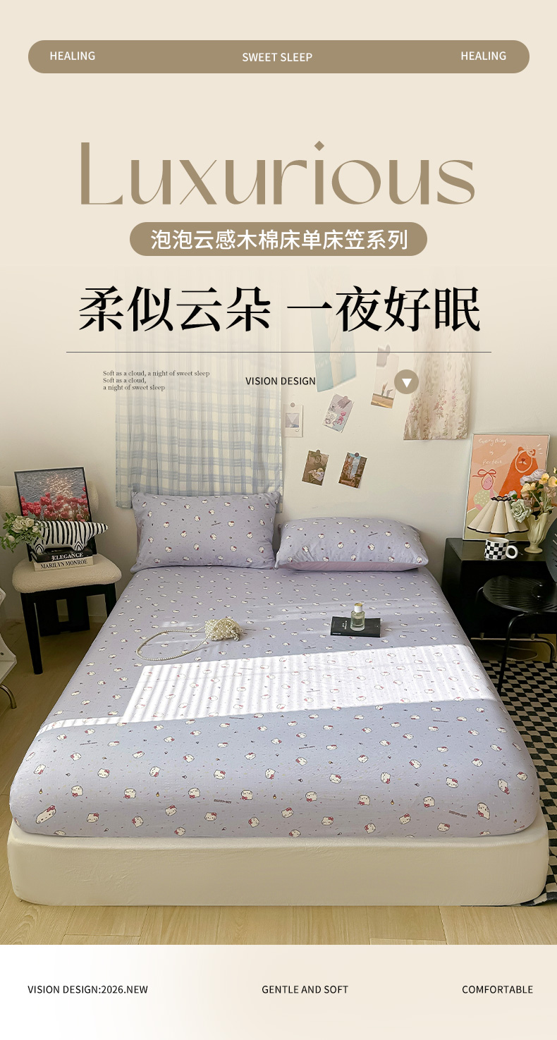 繁花家居 2026新款泡芙棉云感木棉邹邹纱单床笠床单单件学生床 幻紫喵语