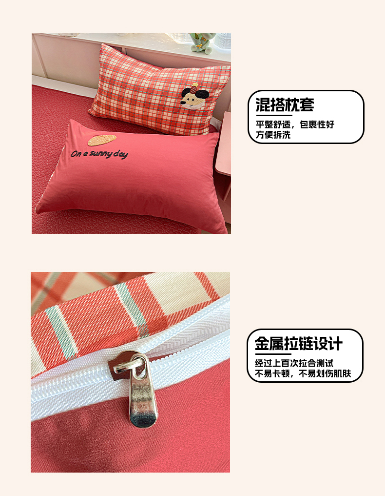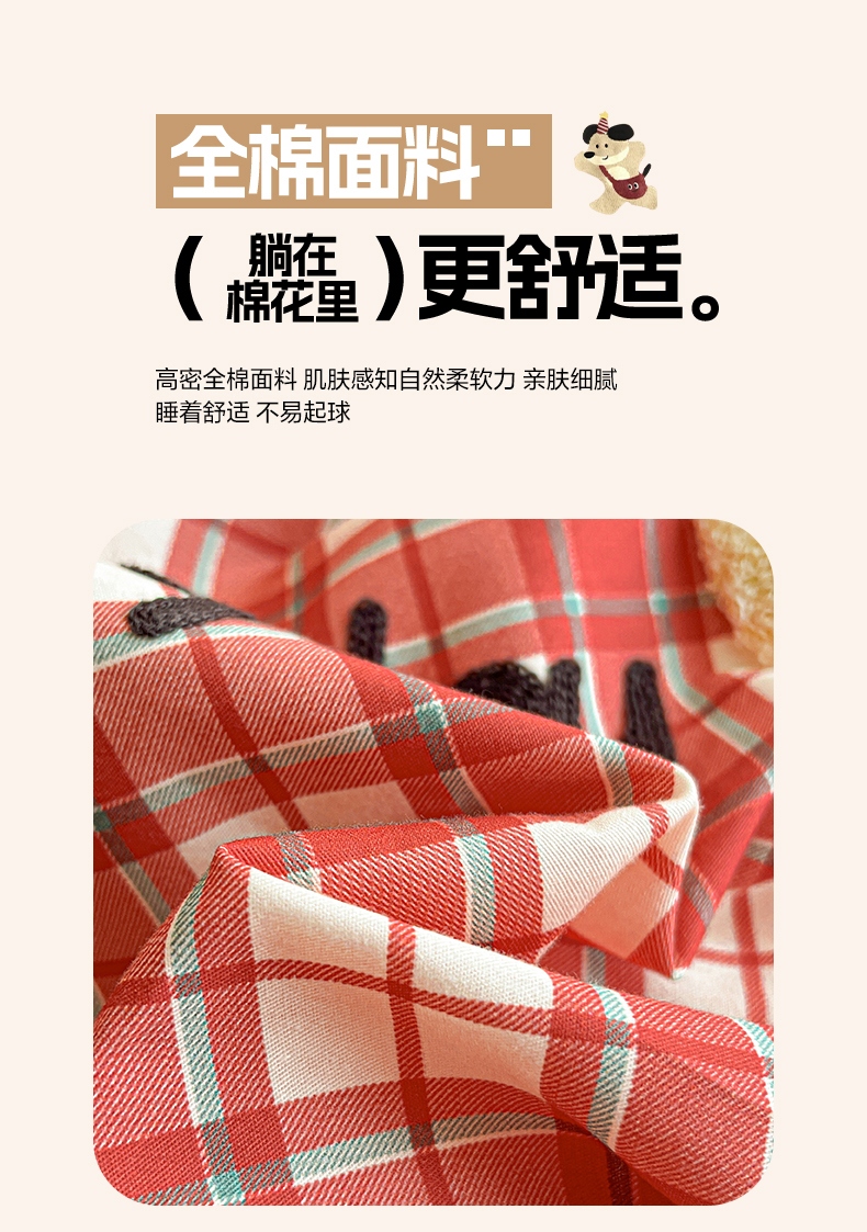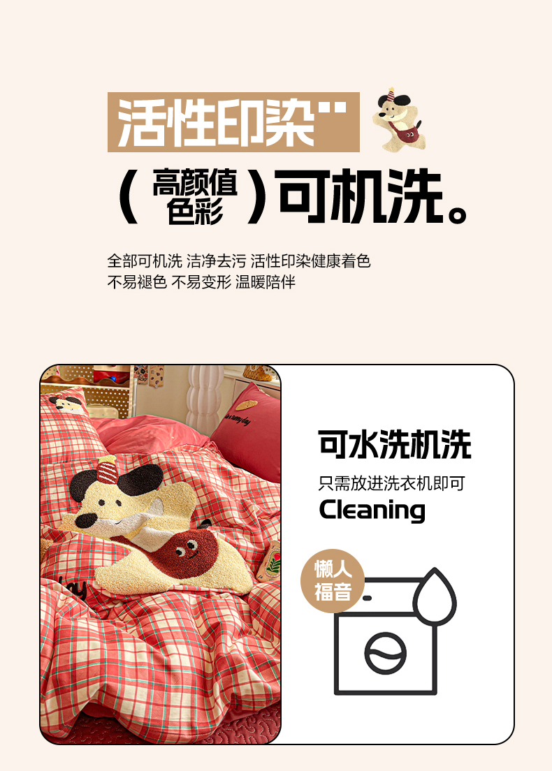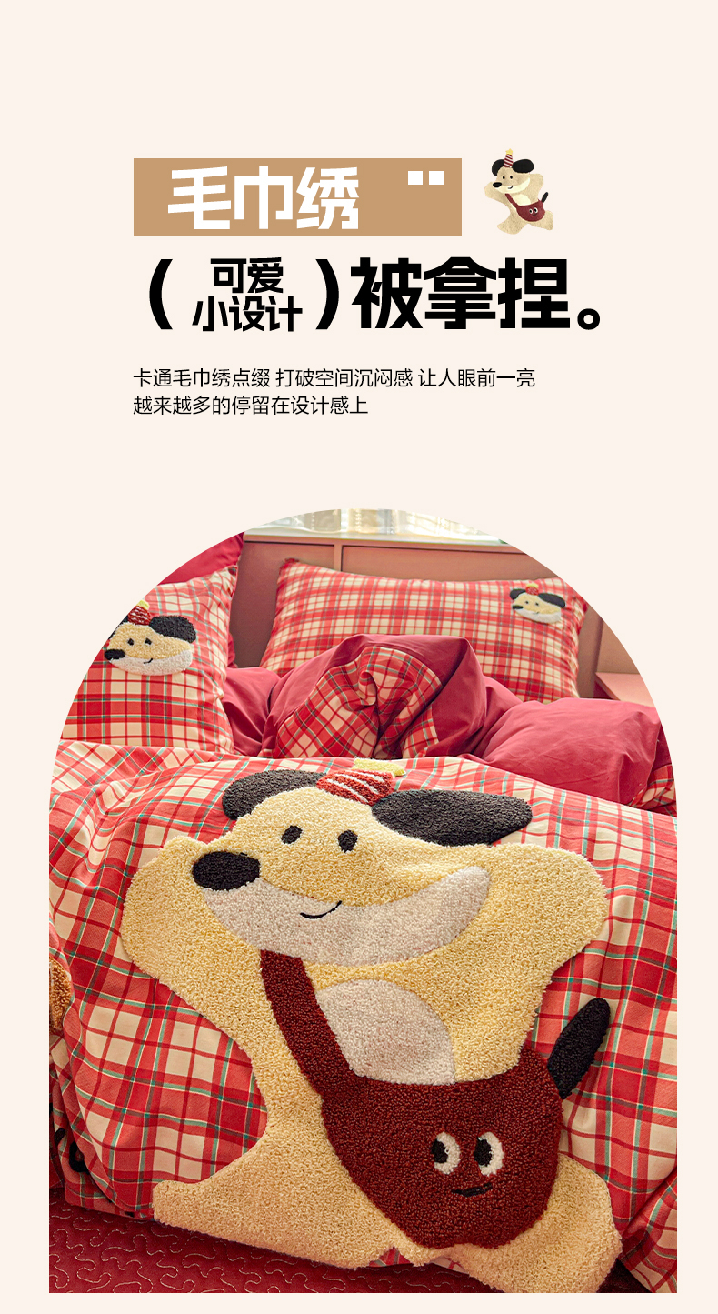 商品名称:鑫喜莱家纺 2026新款全棉纯棉13372床盖款原创毛巾绣四件套 面包小狗