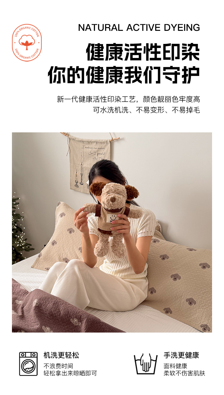 商品名称:沐瑟家纺 2026新款纯棉四层纱布枕巾-叮叮狗和浅跳兔 浅跳兔-咖色