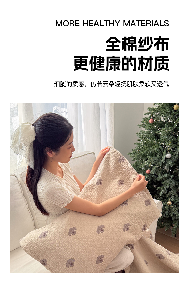 (总)沐瑟家纺 2025新款简约风多功能纱布盖毯纱布毯子毛巾被床盖沙发巾单毯枕巾枕套三件套,H本色,H橙色,H咖色,大马士革本色
