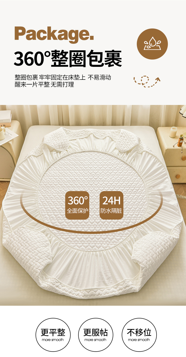 邵依家纺 2026新款原棉防水床笠系列 爱心本白