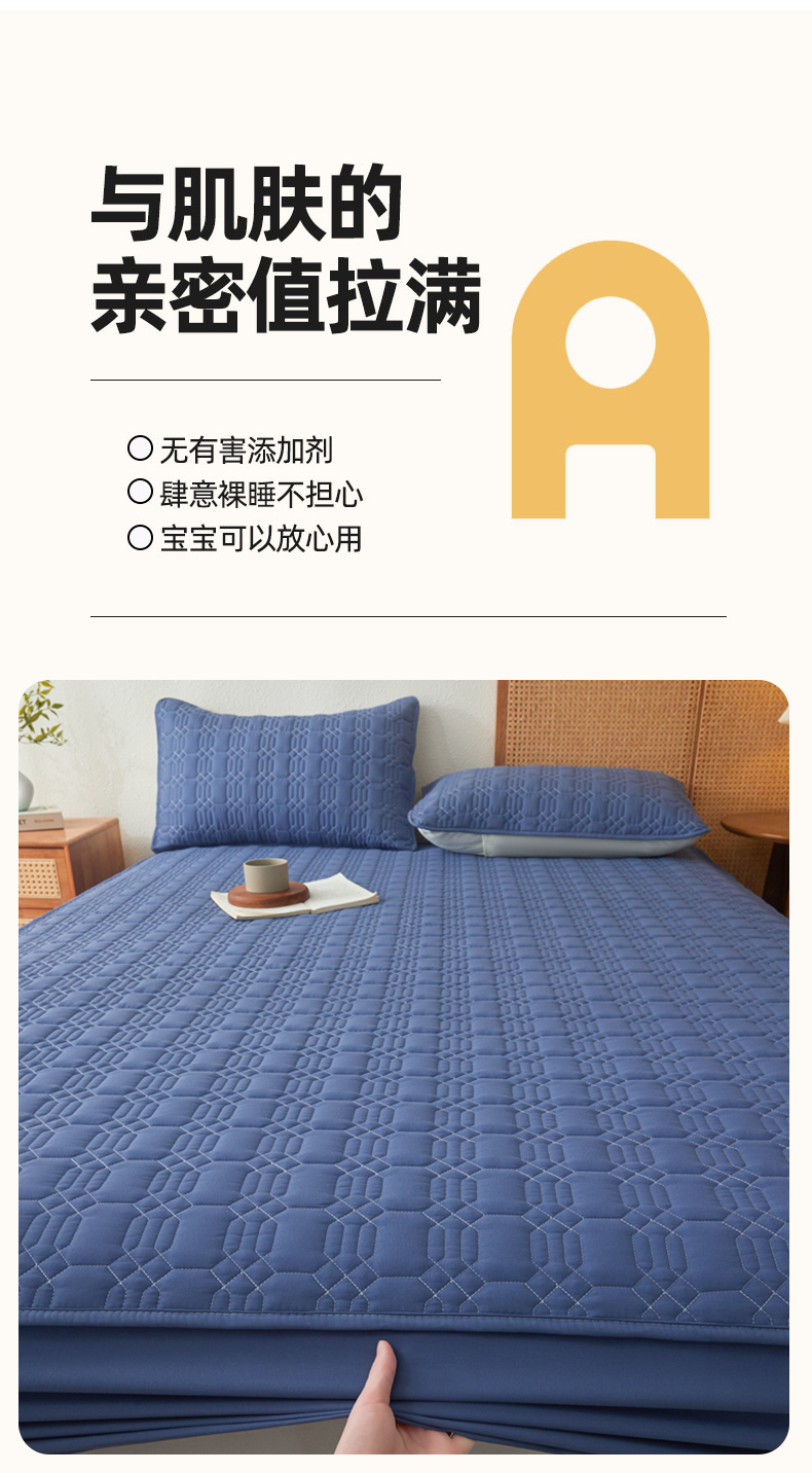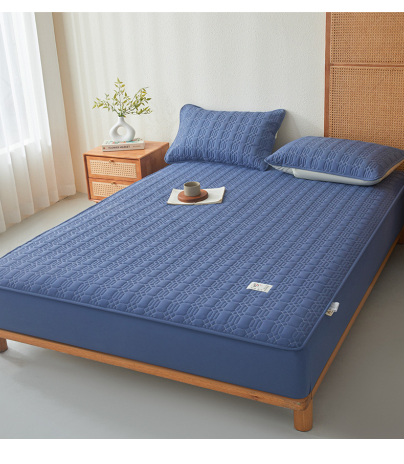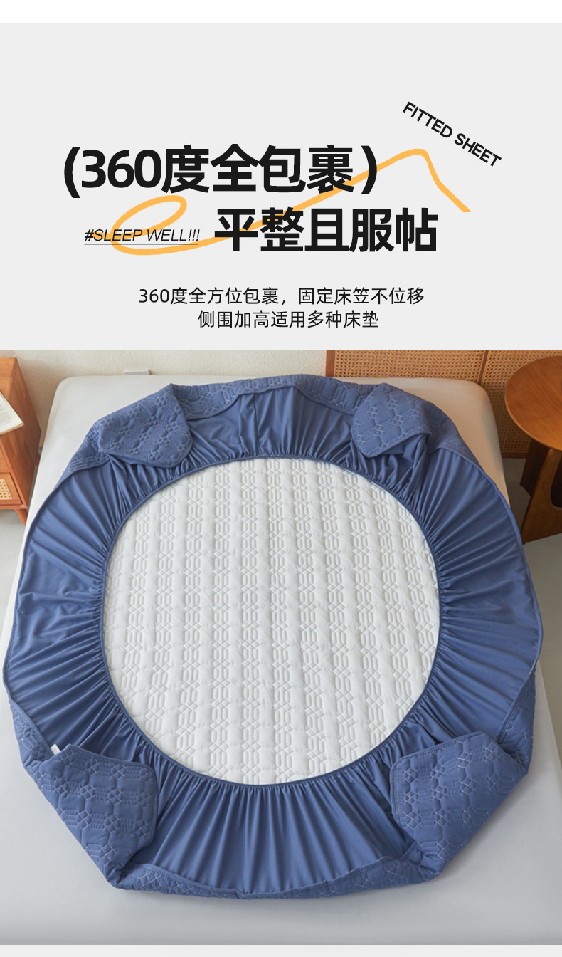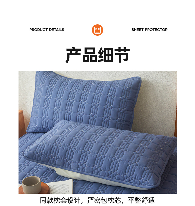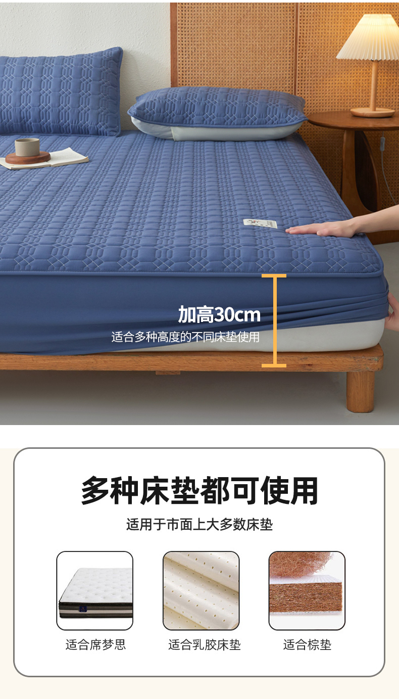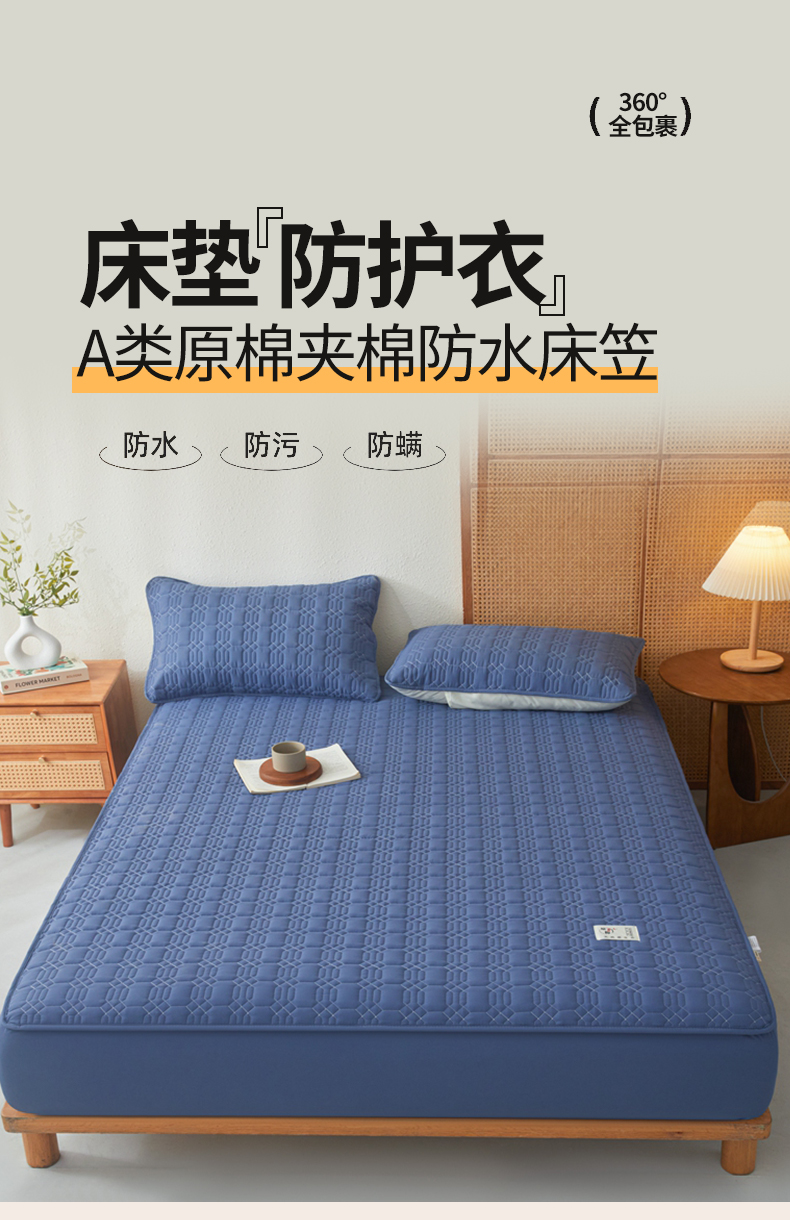 邵依家纺 2026新款原棉防水床笠系列 菱格黛蓝