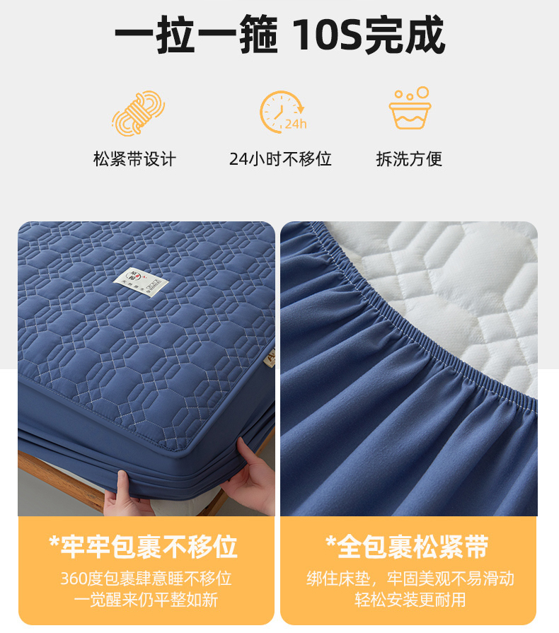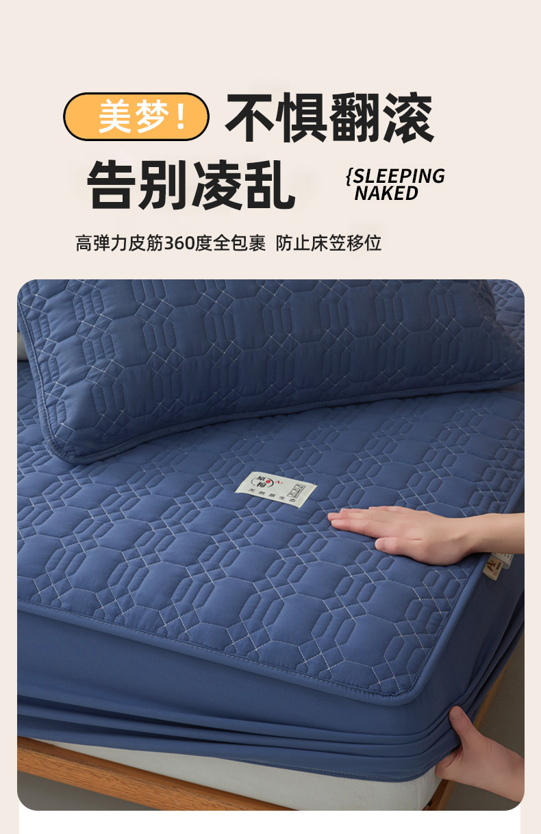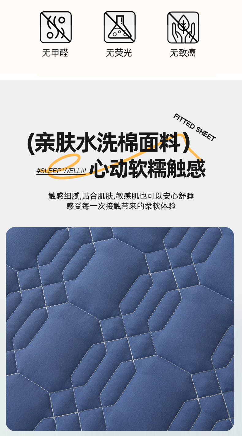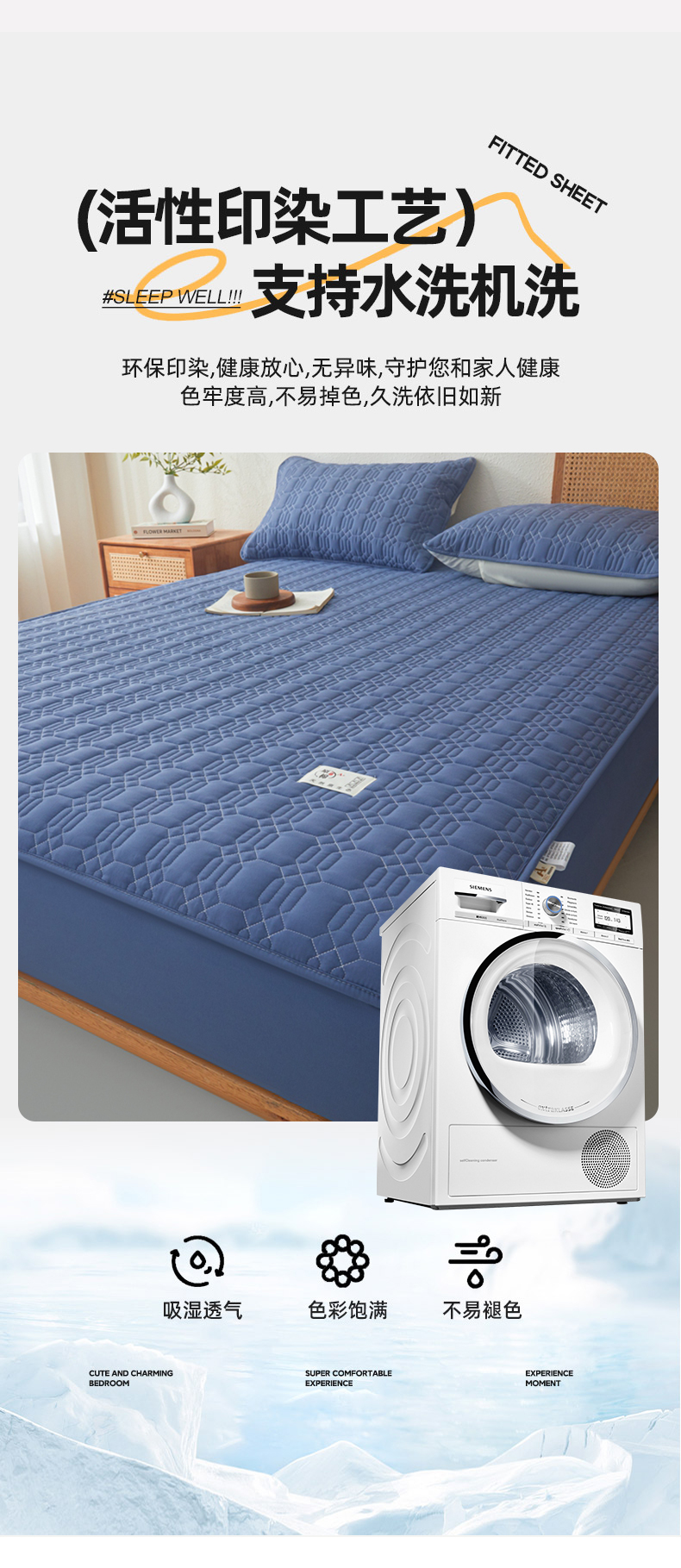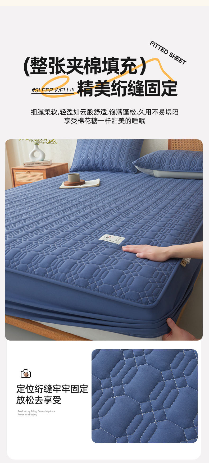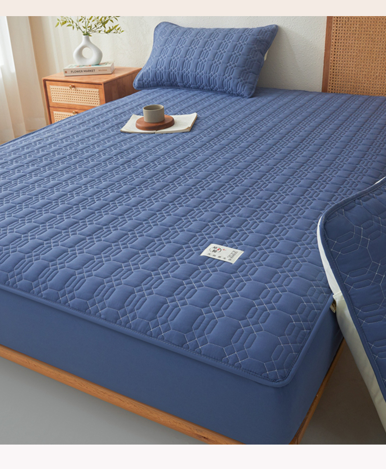 邵依家纺 2026新款原棉防水床笠系列 菱格黛蓝