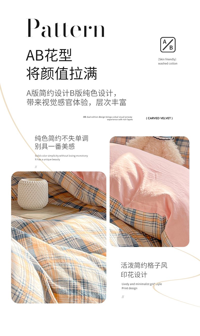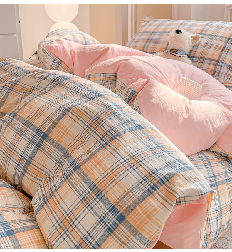 (总)纽缦家纺 2026新款水洗棉简约格子风学生床套件系列