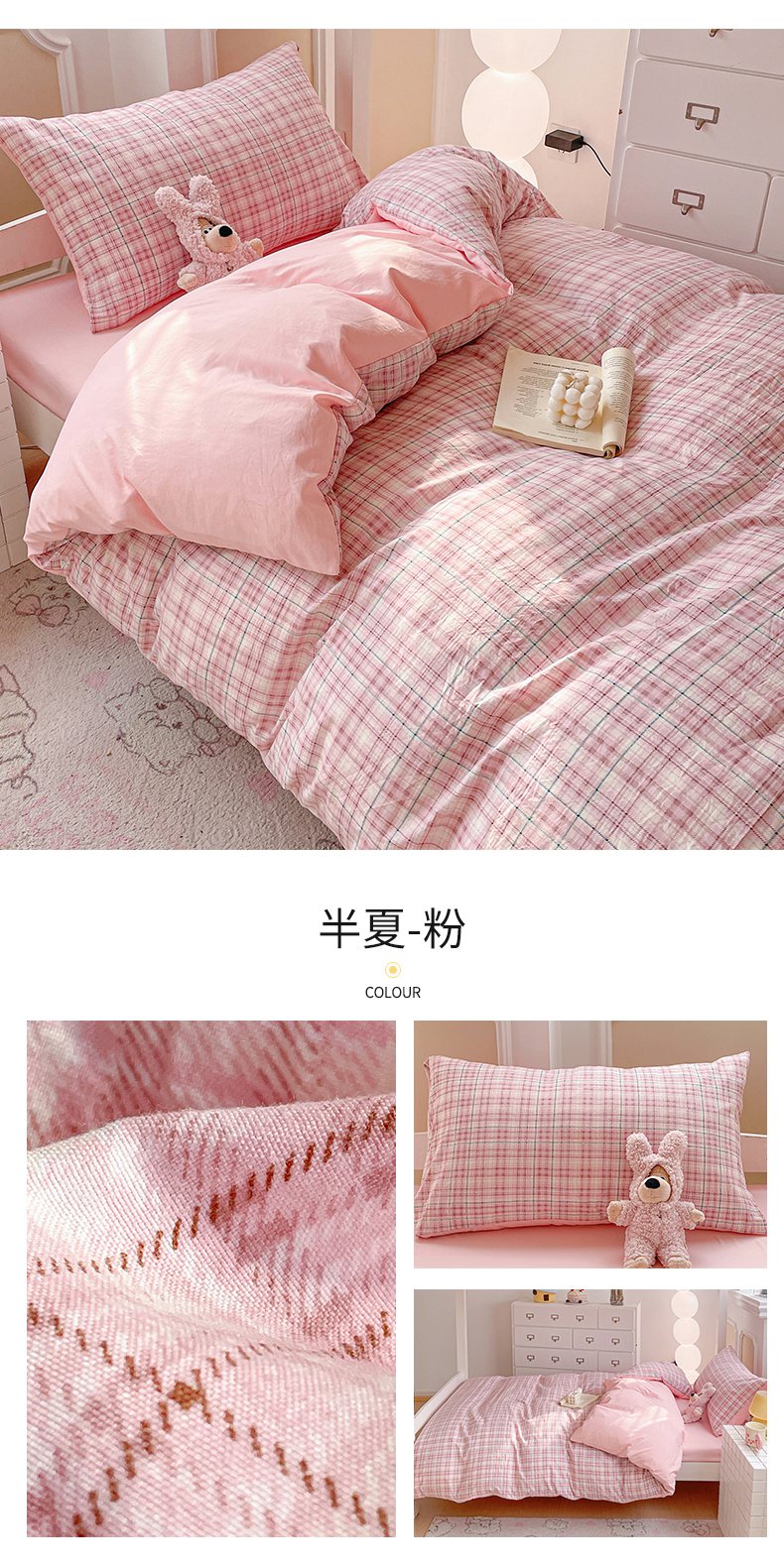 商品名称:(总)纽缦家纺 2026新款水洗棉简约格子风学生床套件系列