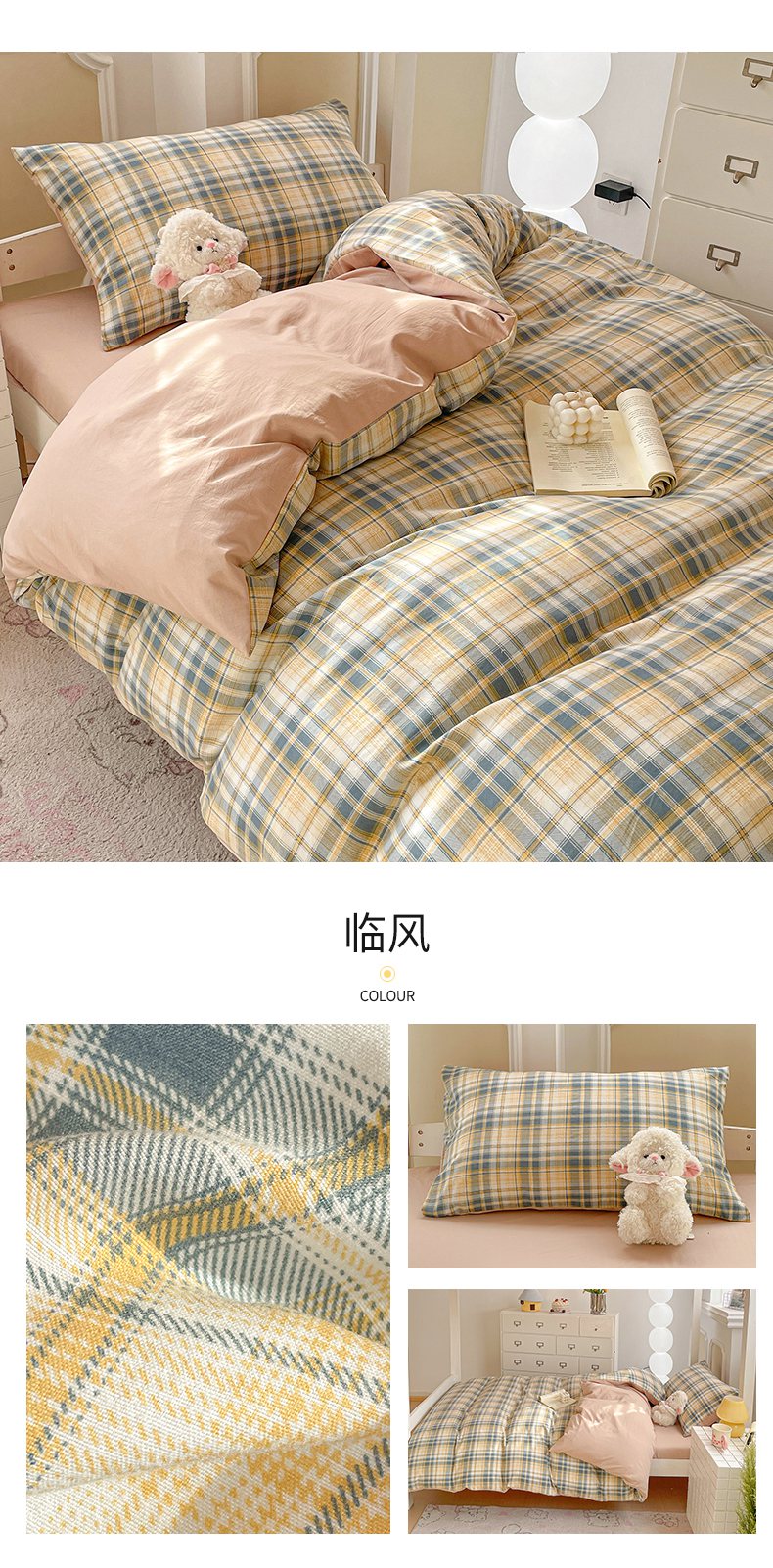 当前位置: 91家纺网 > 商品网购 > 床品套件 > 四件套 > 水洗棉四件套 > 纽缦家纺 2026新款水洗棉简约格子风学生床套件系列 暮春