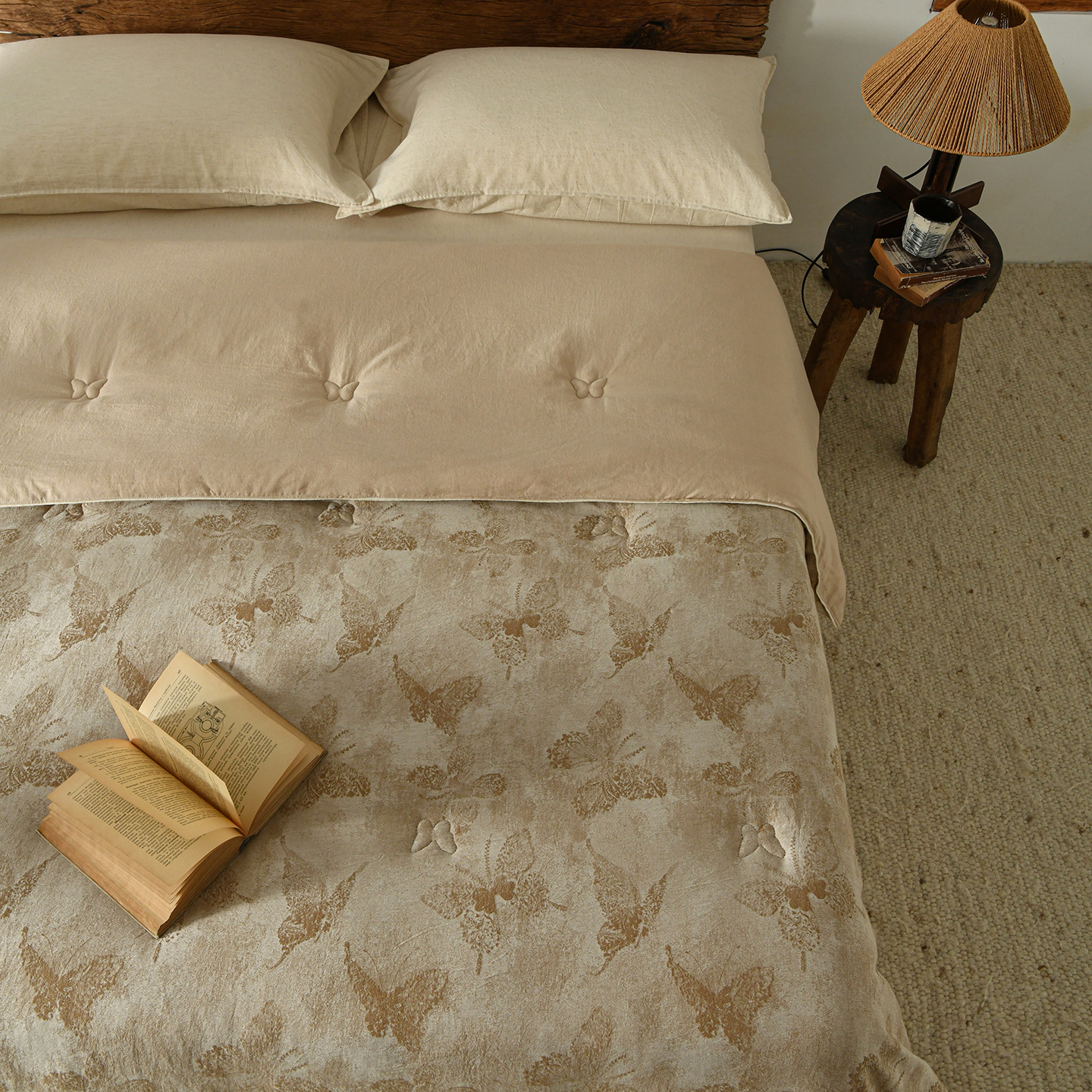 • 91家纺网 家纺一手货源 找家纺 (总)松色家居 2026新款全棉蚕丝冬被被子被芯-蝶韵-香槟
