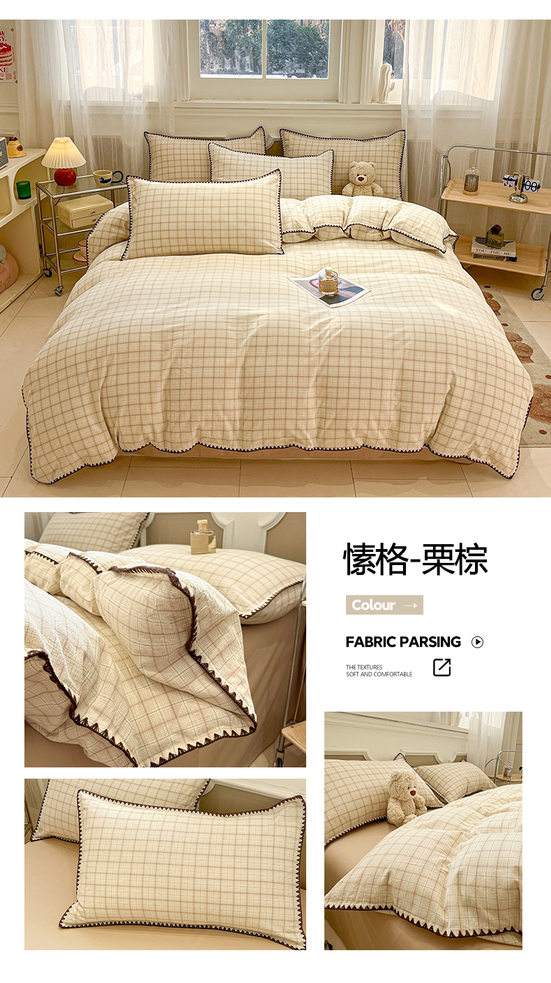 (总)莱茵家居 2026新款A类全棉色织水洗棉格子贝壳边套件-愫格系列,愫格-茶褐,愫格-黑檀,愫格-松绿,愫格-栗棕,愫格-琥珀,愫格-灰粉