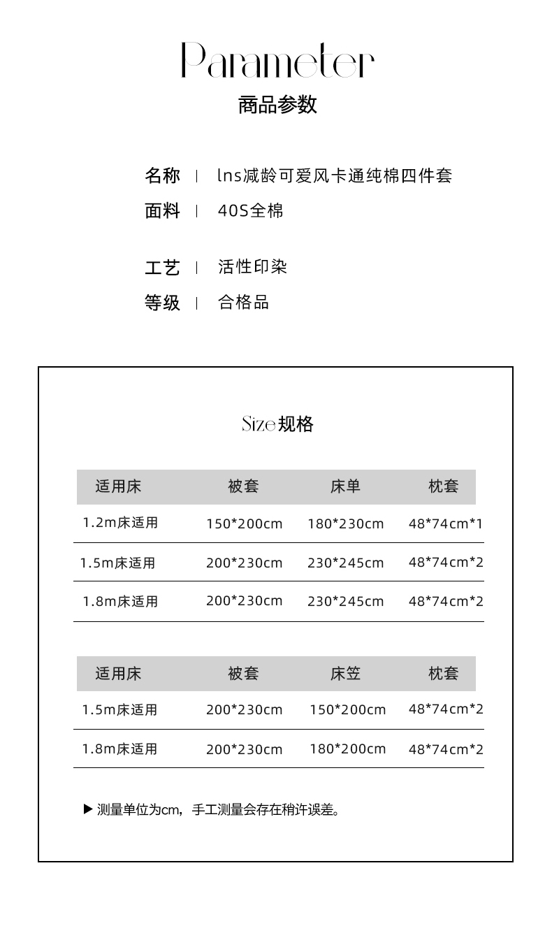 【床笠款】1.8四件套-被套200x230 | ¥90.00 |