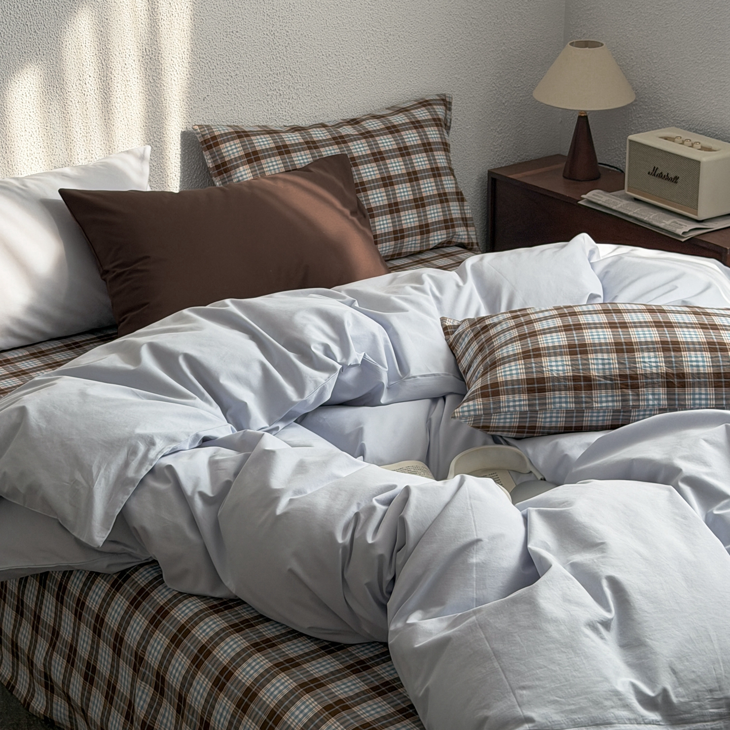 当前位置: 91家纺网 > 商品网购 > 床品套件 > 四件套 > 全棉普通四件套 > 蜜宿 2026新款全棉纯棉40s水洗棉四件套-蓝海日记 蓝海日记(枕套微蓝+可可棕)