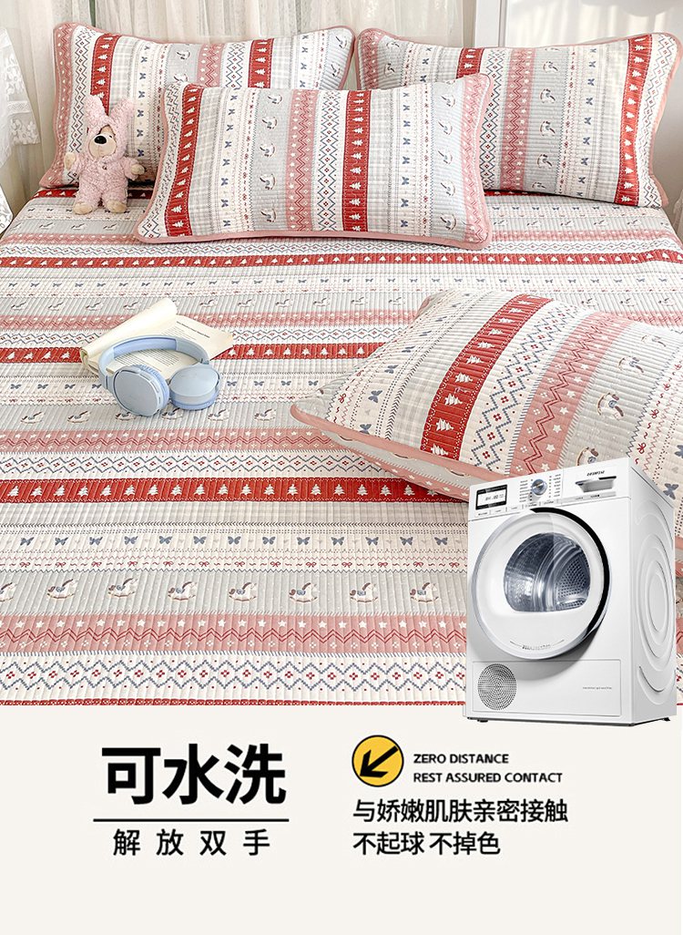 (总)金丝兔 2025新款小清新亲肤印花水洗棉单床盖 夹棉床盖 床盖三件套,巴黎恋人,呆呆熊,小灰格,樱桃小格