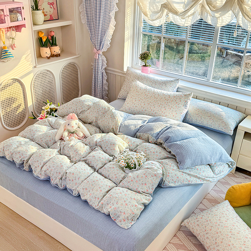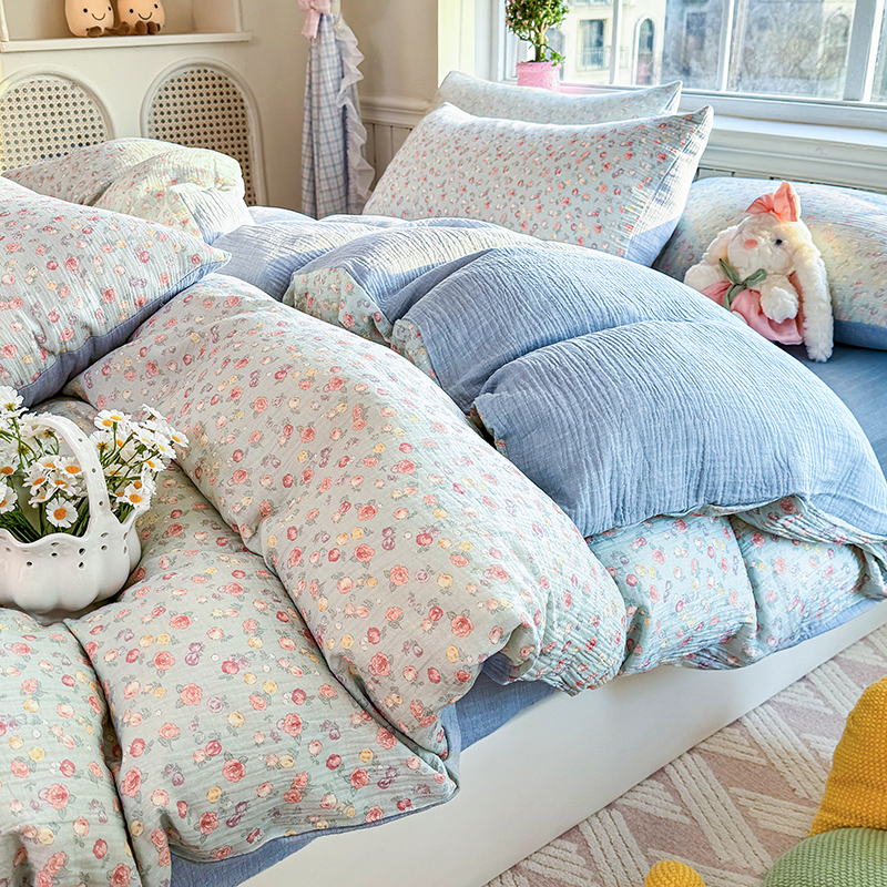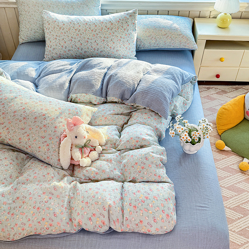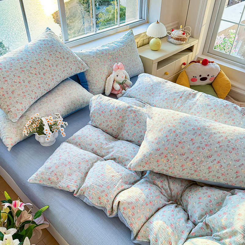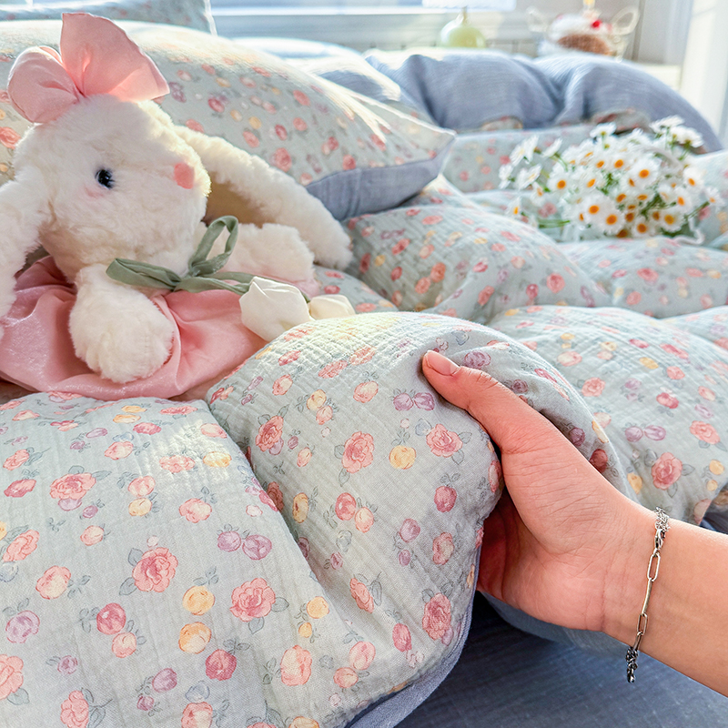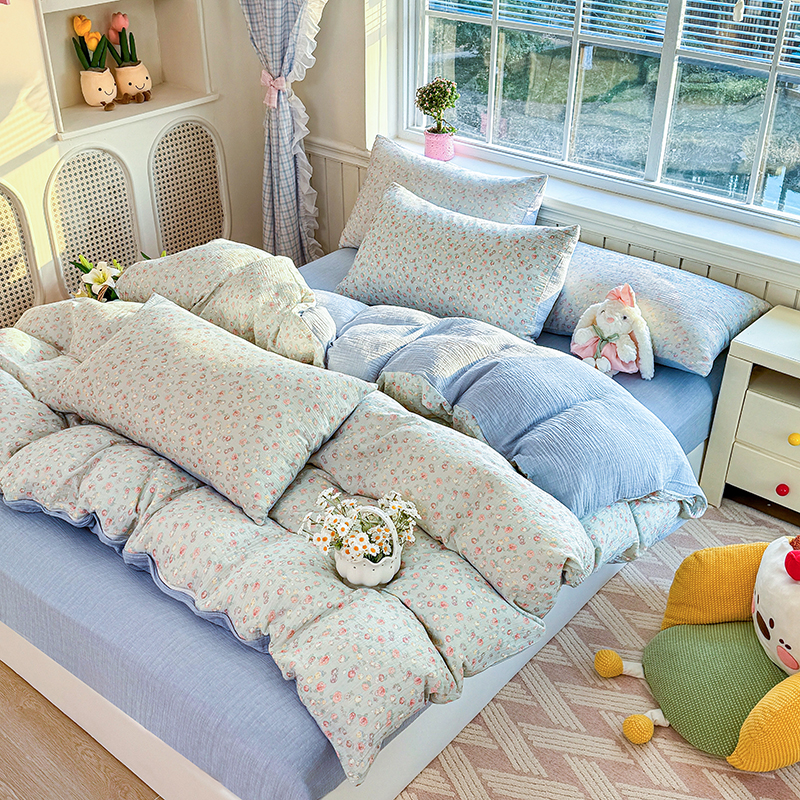 木楌家居 2026新款A类全棉皱皱纱印花四件套 林汐
