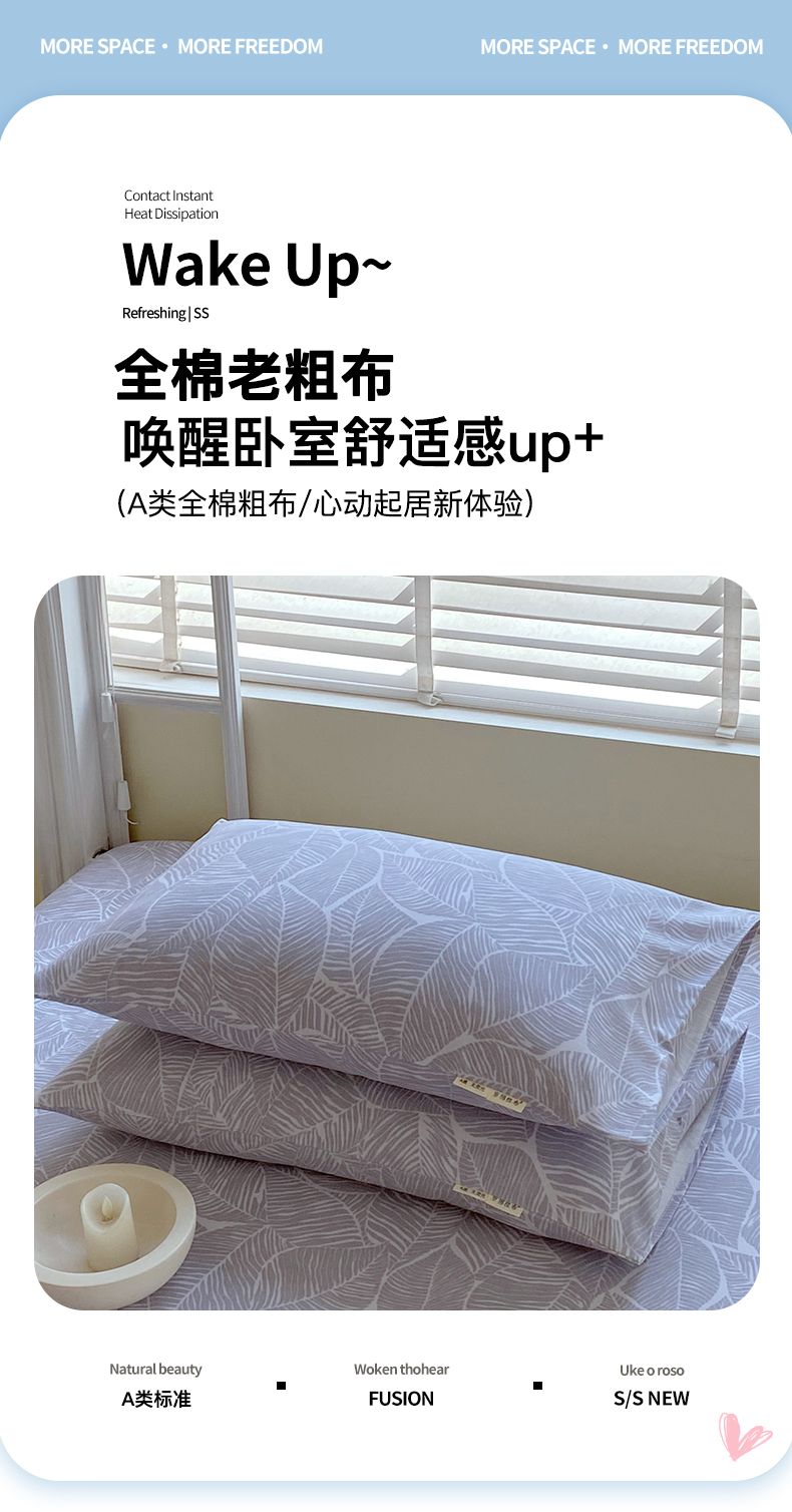 商品名称:金鑫汇家纺 2026新款全棉老粗布单品枕套系列 千叶