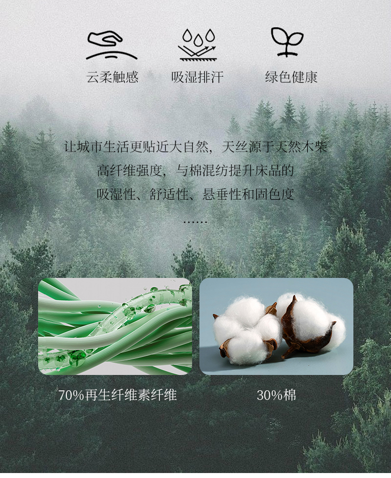 被面材质: 莱赛尔纤维+棉(混纺)