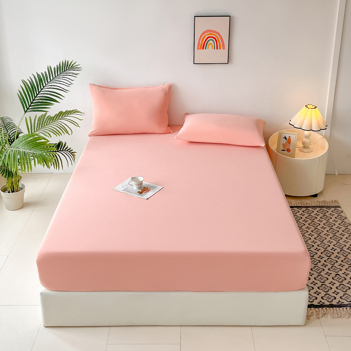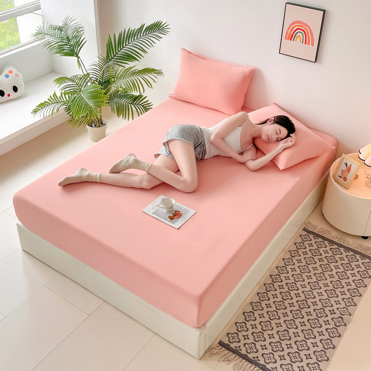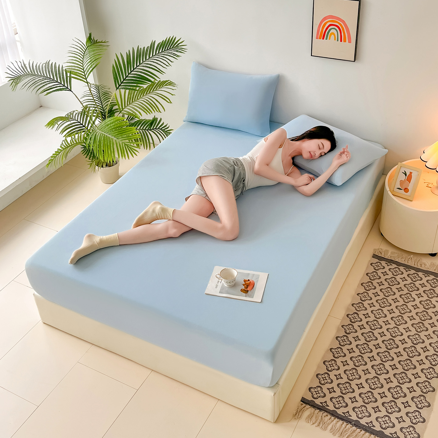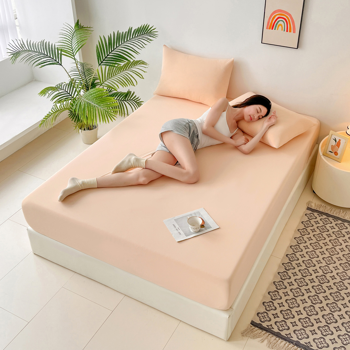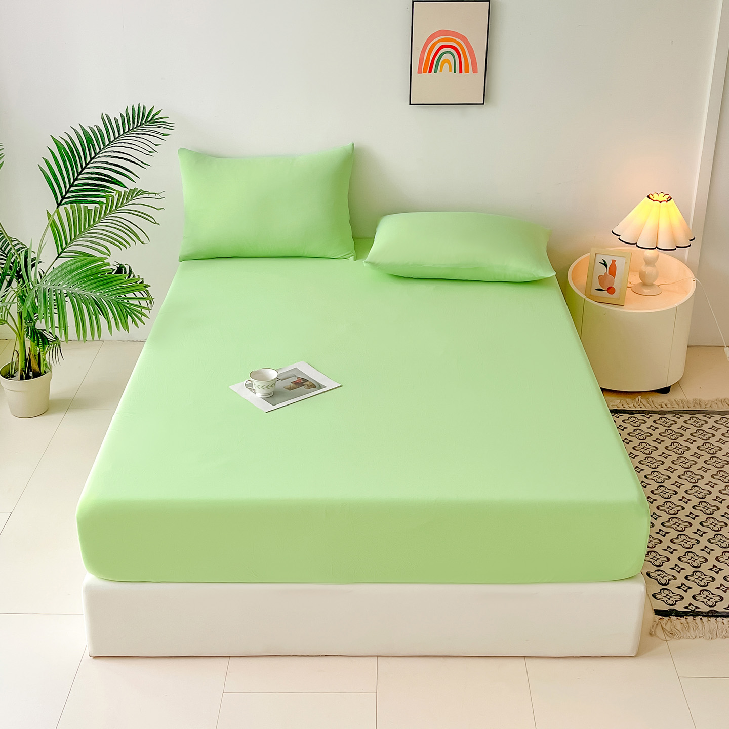 (总)亚龙工厂店 2026新款跨境热款云母冰丝席床笠三件套,深蓝,粉色,果绿,灰色,浅绿,天蓝,玉色,紫色,组合图仅展示