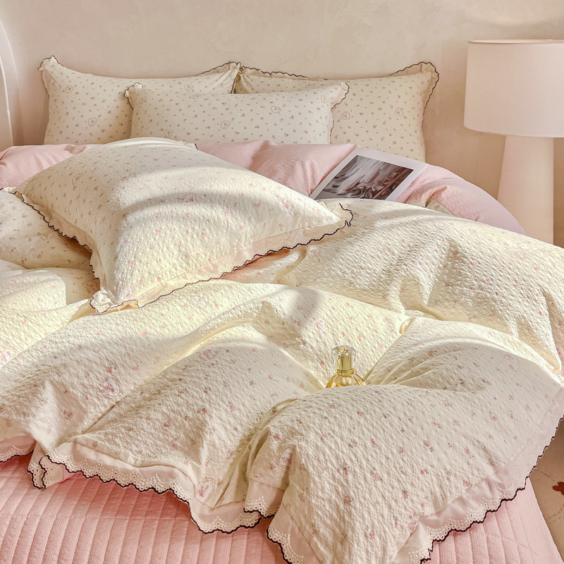梦可莱家居 2026新款云朵泡芙棉床盖四件套 彩绘玫瑰