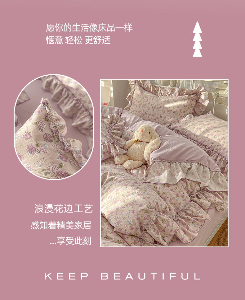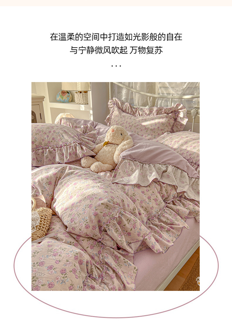 当前位置: 91家纺网 > 商品网购 > 床品套件 > 四件套 > 水洗棉四件套 > 梵克保罗 2026新款春款古法水洗仿棉云朵棉花边四件套 蔷薇园