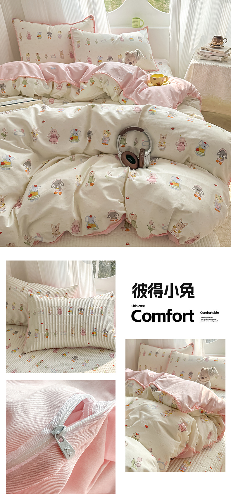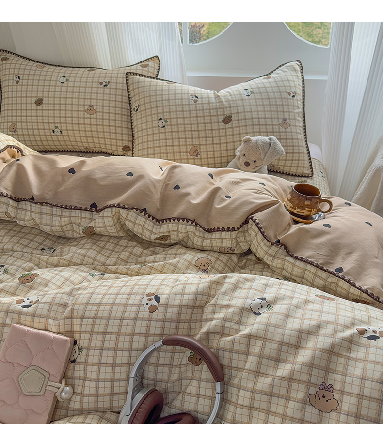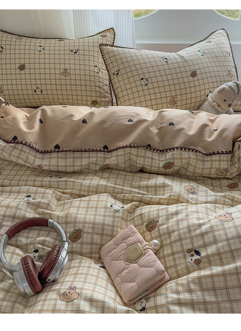 当前位置: 91家纺网 > 商品网购 > 床品套件 > 四件套 > 全棉普通四件套 > KA家纺 2026春夏新款全棉纯棉床盖款卡通印花贝壳边四件套 樱桃熊仔