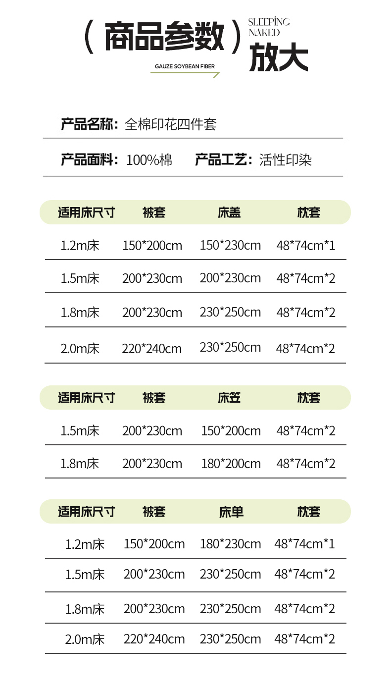【床笠款】1.8四件套-被套200x230 | ¥100.00 |