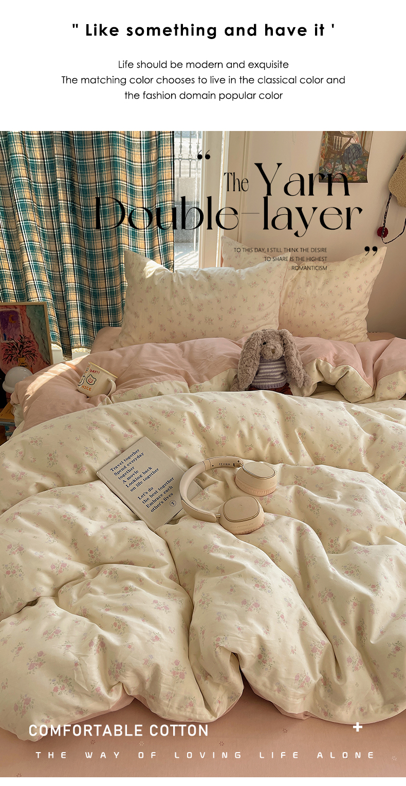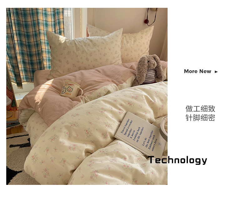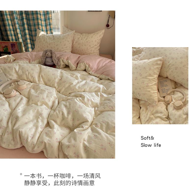 当前位置: 91家纺网 > 商品网购 > 床品套件 > 四件套 > 全棉普通四件套 > XIWEN-希文家纺 2026春夏新款40支全棉纯棉13372小清新印花四件套 粉墨