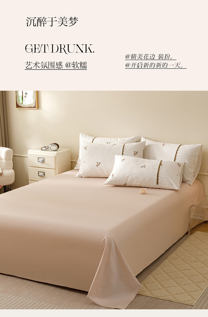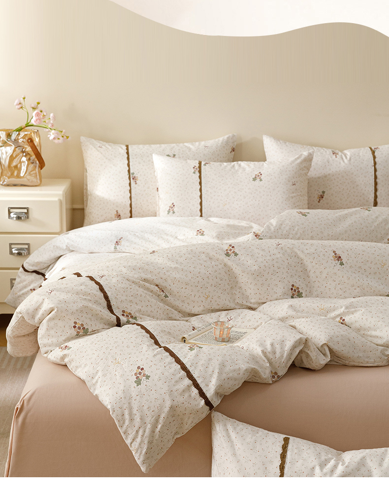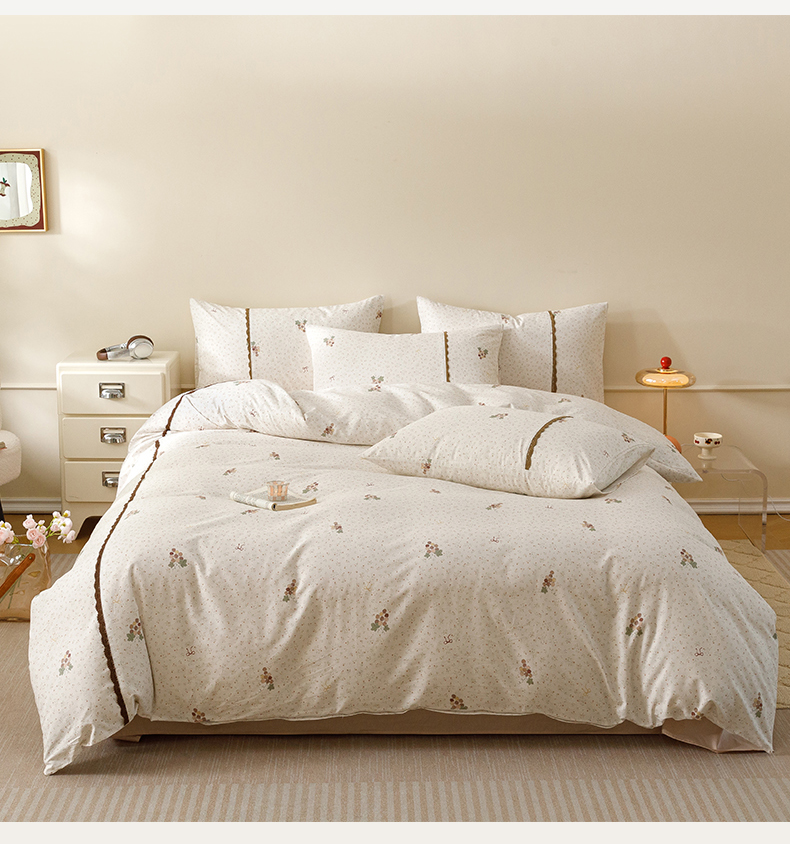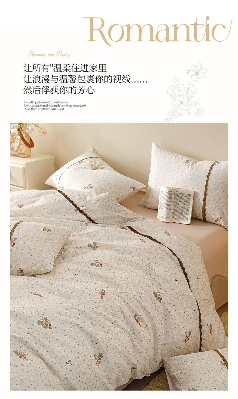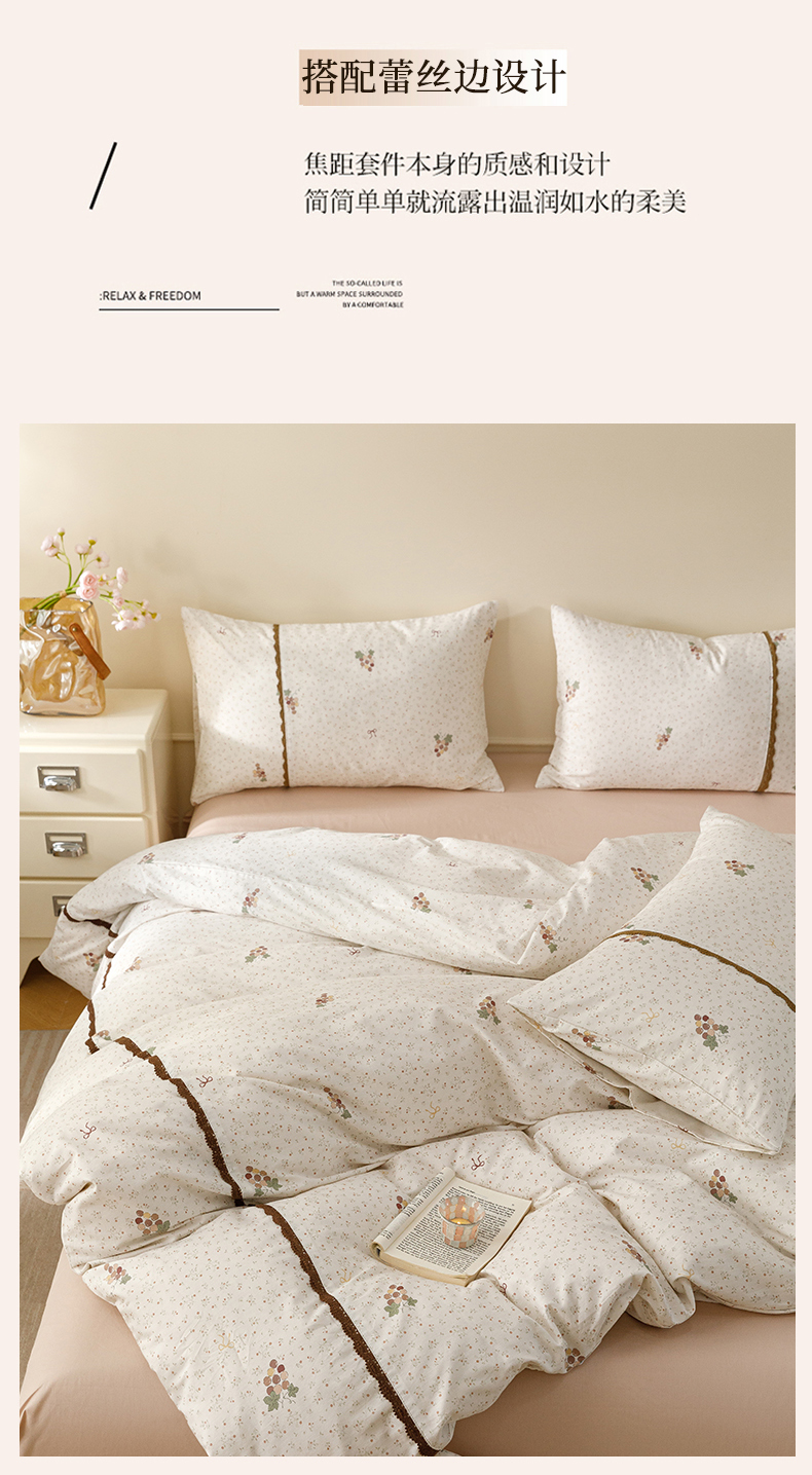 当前位置: 91家纺网 > 商品网购 > 床品套件 > 四件套 > 全棉普通四件套 > 女子家纺 2026新款40支13070全棉纯棉斜纹印花蕾丝四件套 奶白萄笺
