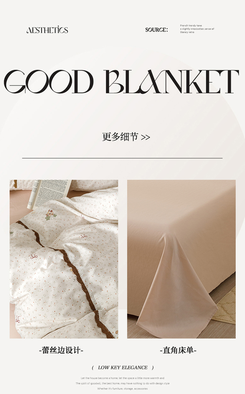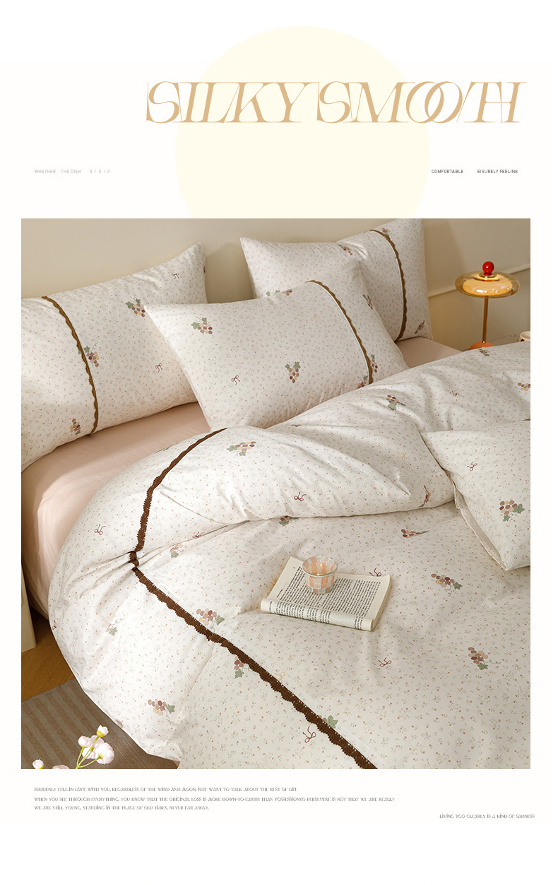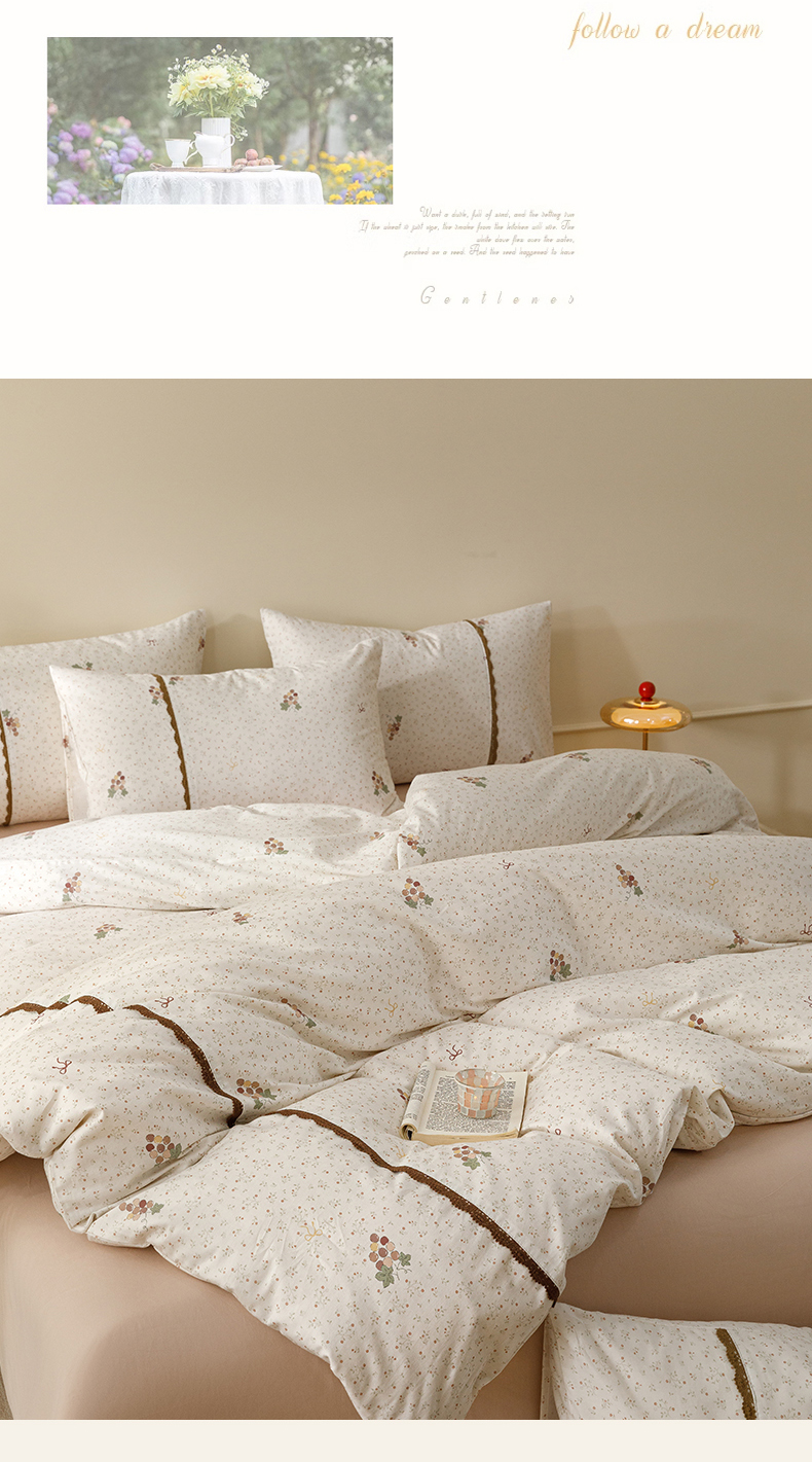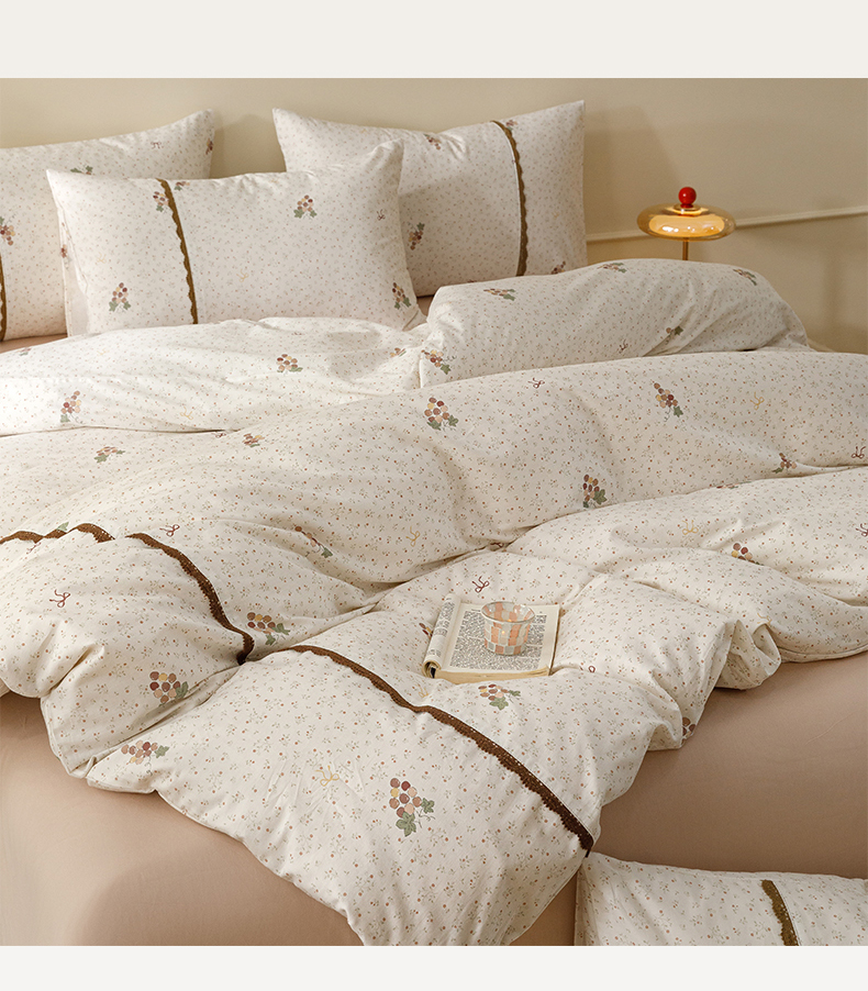当前位置: 91家纺网 > 商品网购 > 床品套件 > 四件套 > 全棉普通四件套 > 女子家纺 2026新款40支13070全棉纯棉斜纹印花蕾丝四件套 奶白萄笺