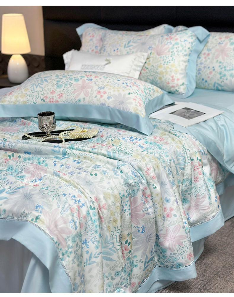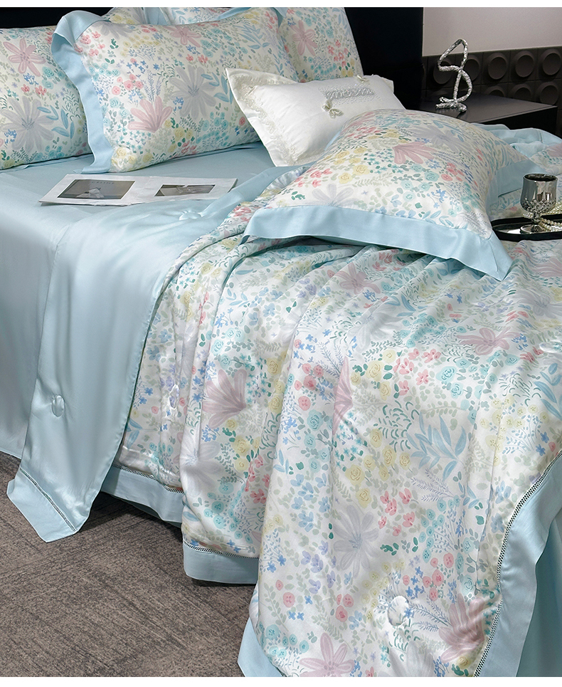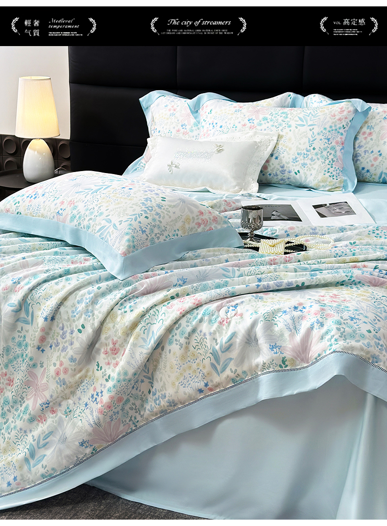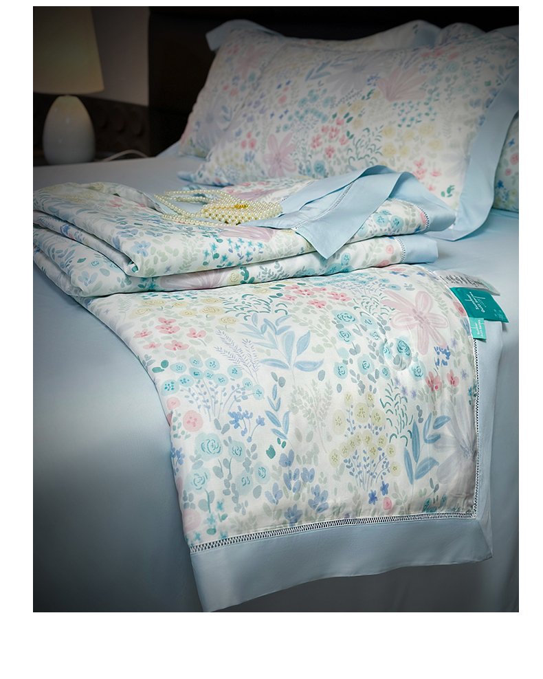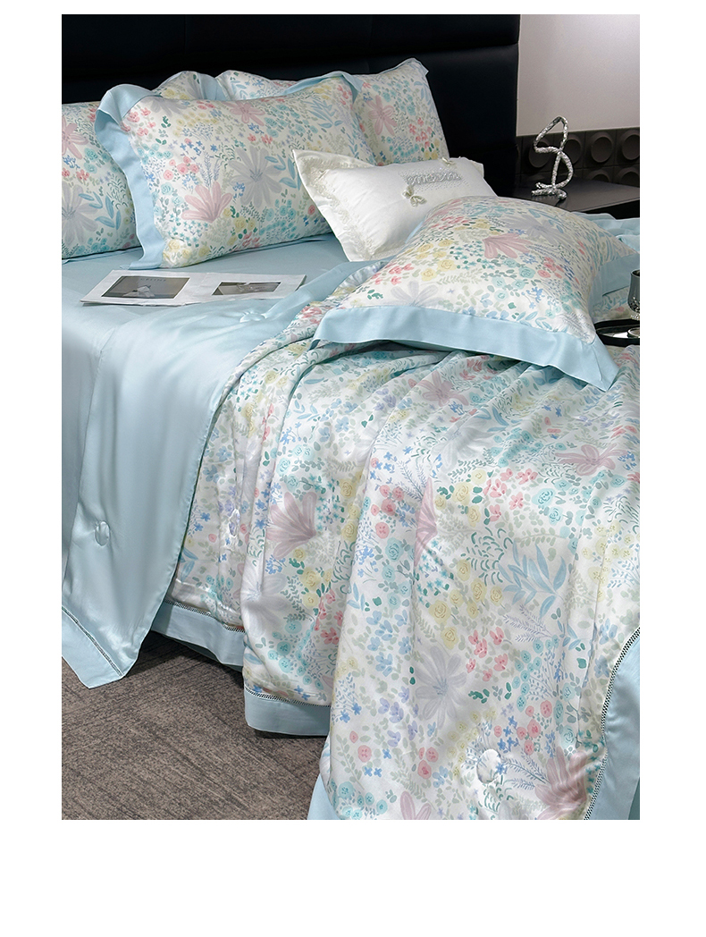 • 91家纺网 家纺一手货源 找家纺 岚司羽 2026春夏新款50天丝夏被四件套夏凉被空调被系列 沐初-兰