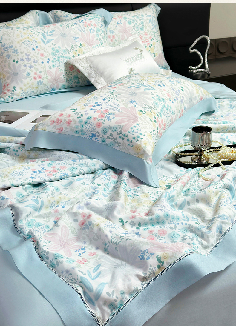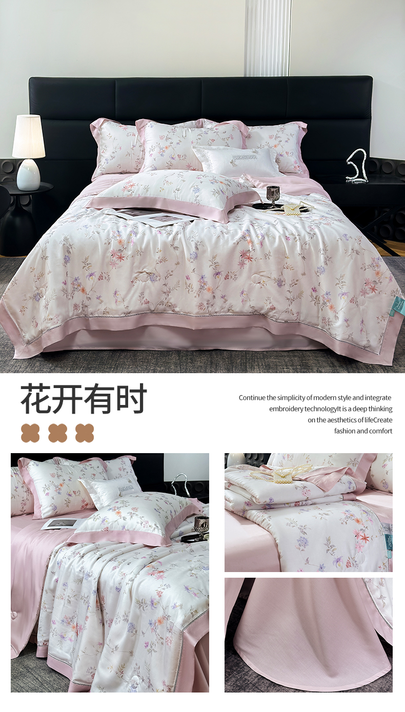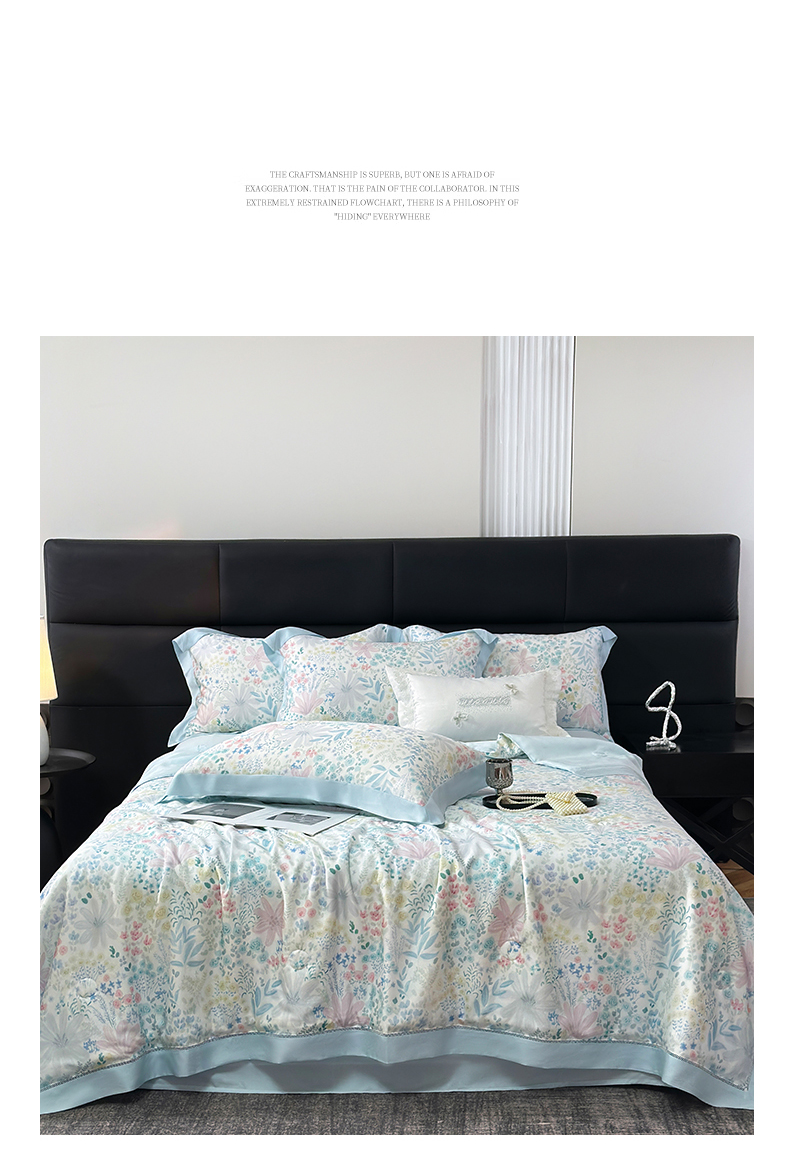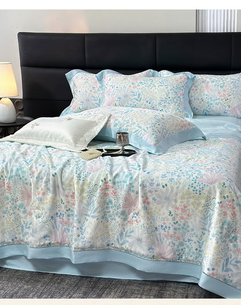 • 91家纺网 家纺一手货源 找家纺 岚司羽 2026春夏新款50天丝夏被四件套夏凉被空调被系列 沐初-兰