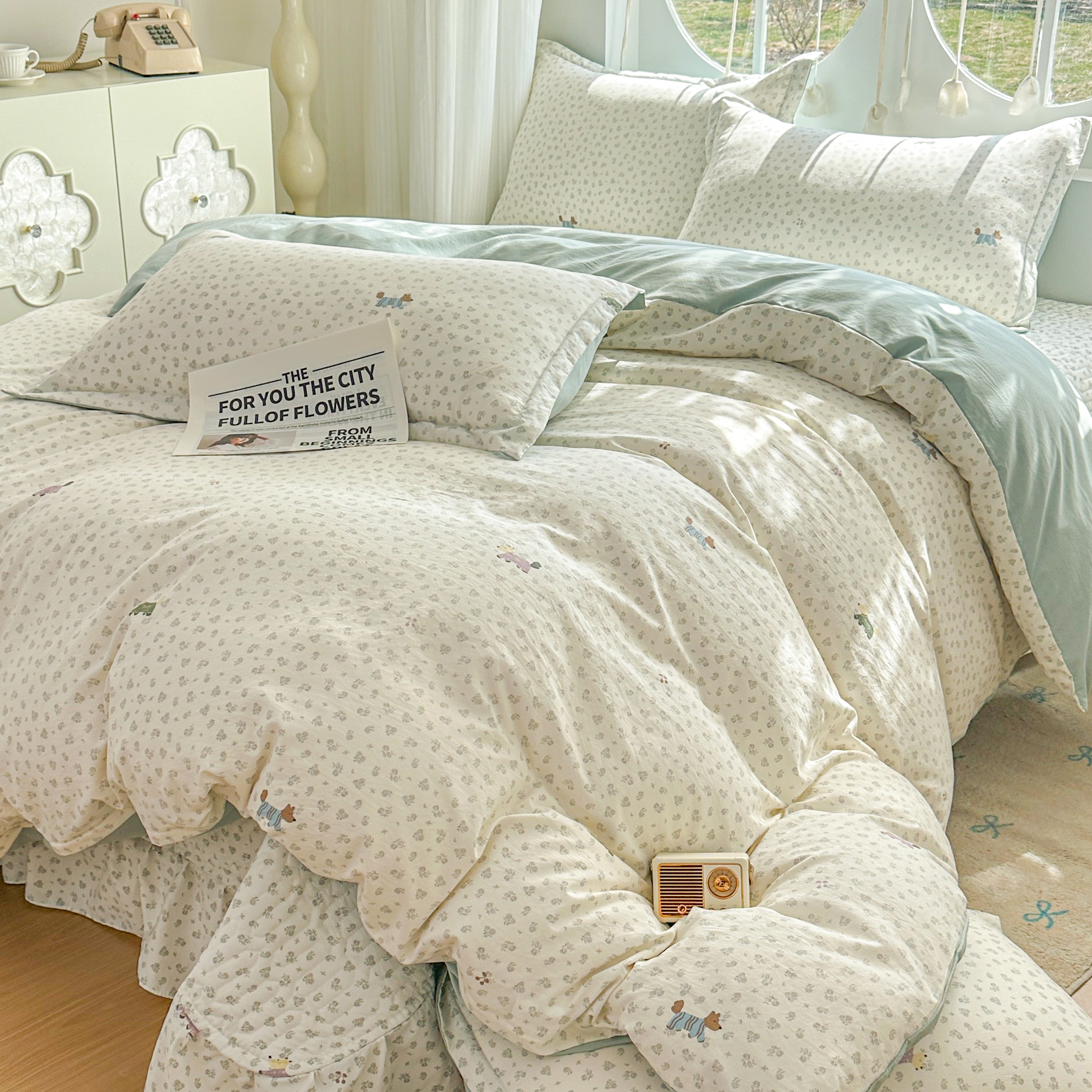 当前位置: 91家纺网 > 商品网购 > 床品套件 > 四件套 > 其它四件套 > 花满路 2026新款床盖四件套 萌萌狗