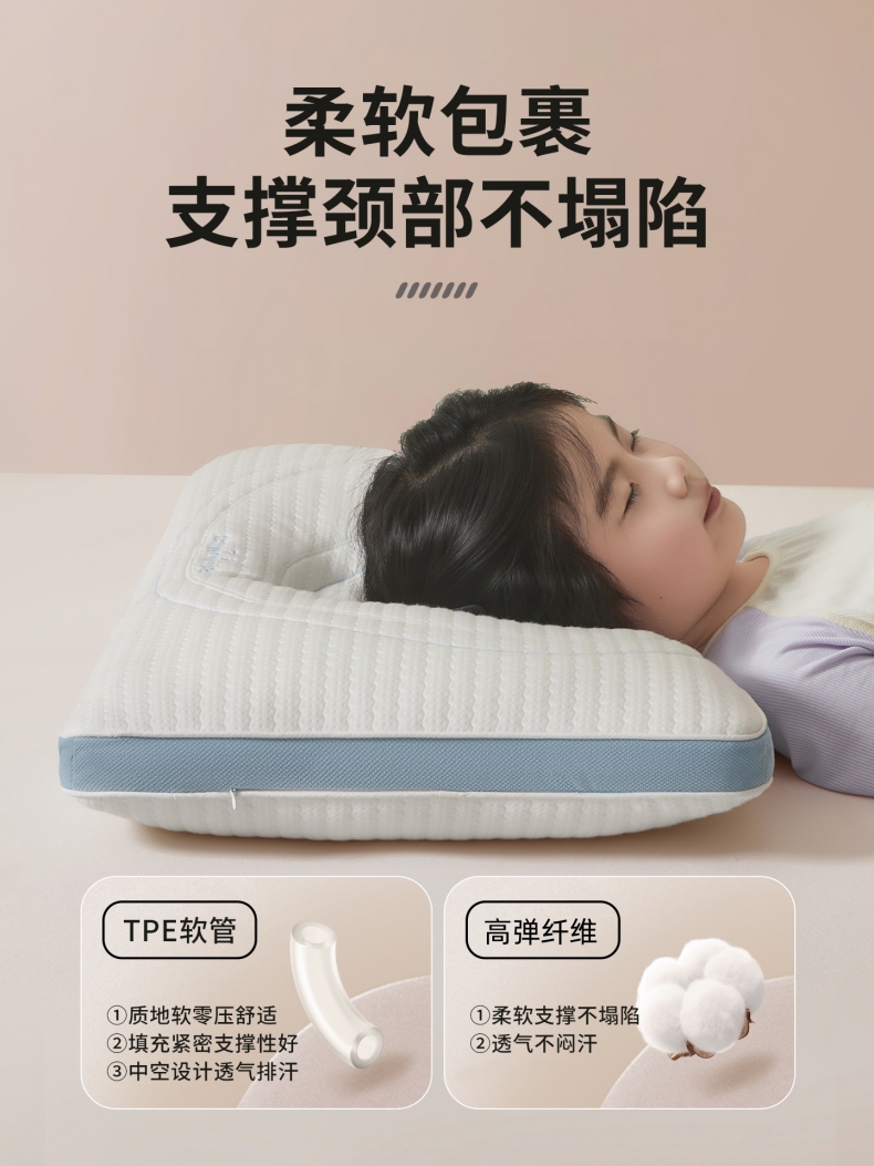 (总)小桃姐家纺 2025新款软管护颈枕 30*50cm儿童学生枕芯 幼儿枕40*60cm小学生枕
