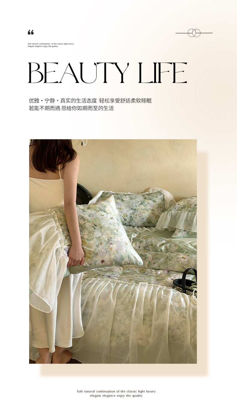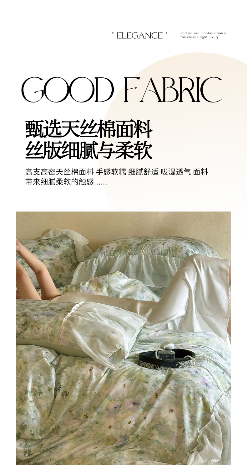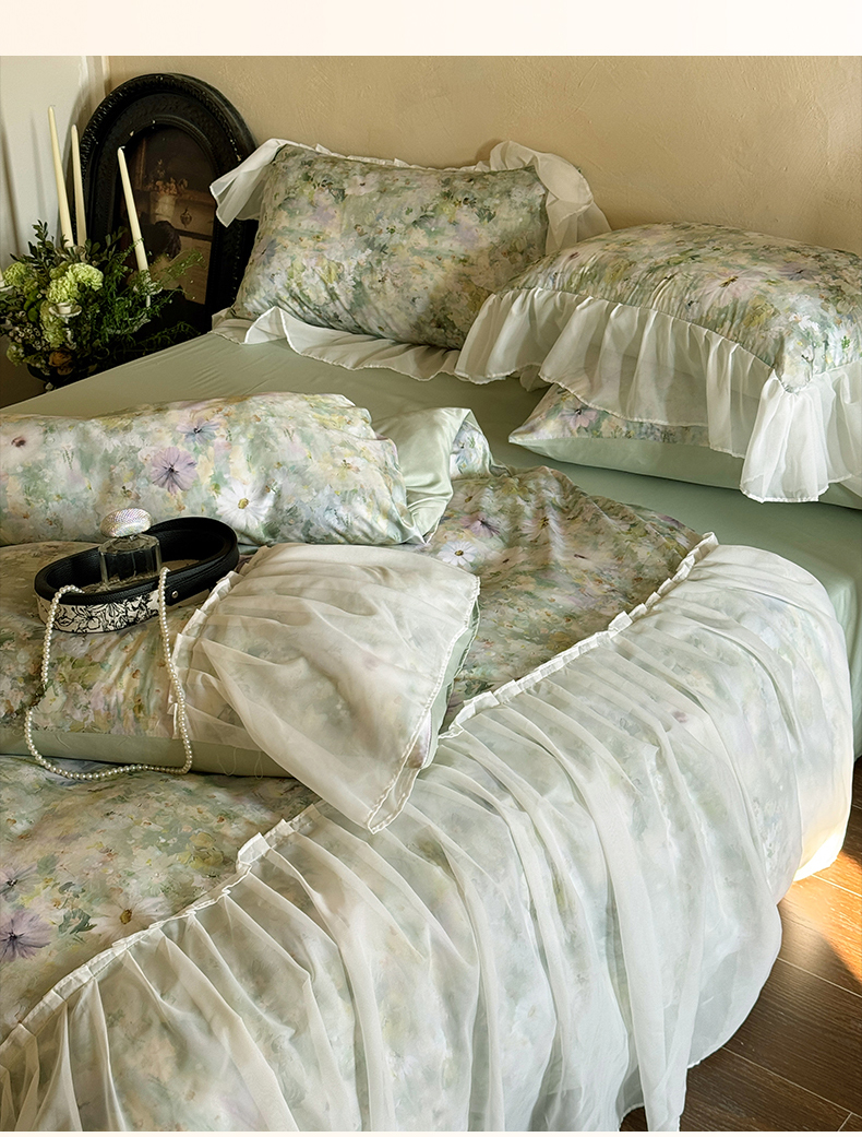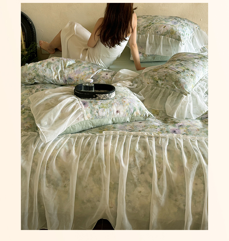 商品名称:艾米家居 2026春夏新款裙边款法式天丝棉冰丝系列四件套提供买家秀 绿野仙踪裙边款
