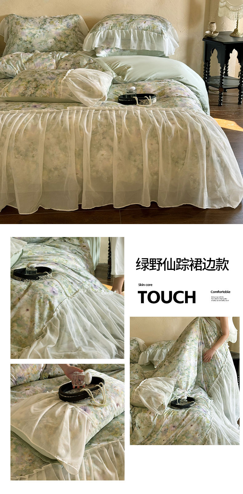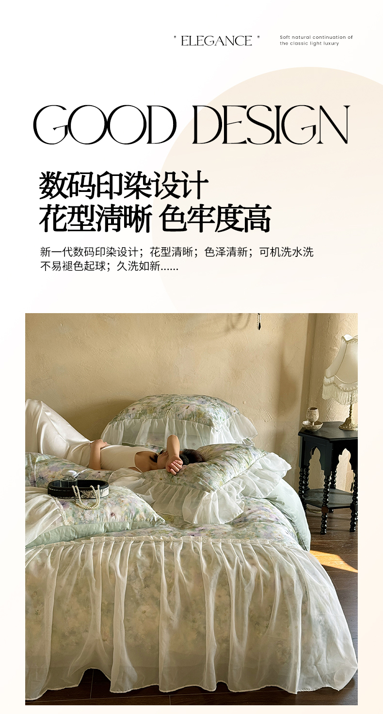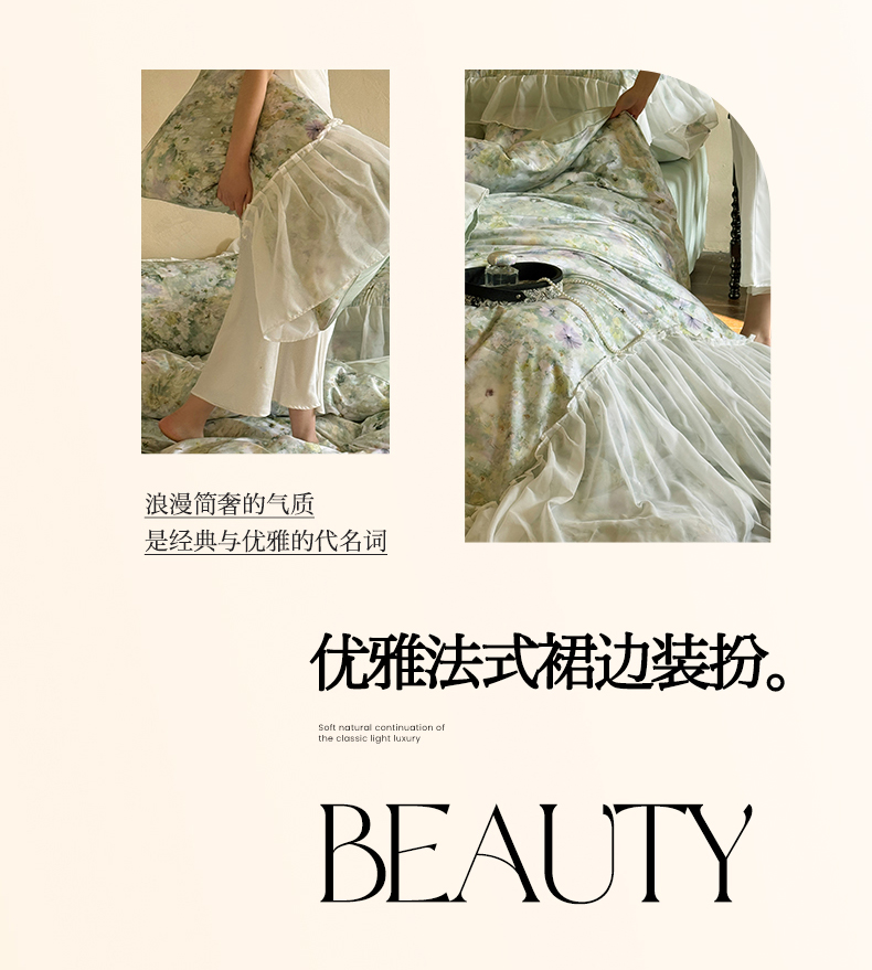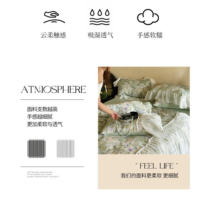 商品名称:艾米家居 2026春夏新款裙边款法式天丝棉冰丝系列四件套提供买家秀 绿野仙踪裙边款