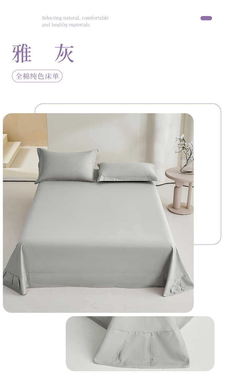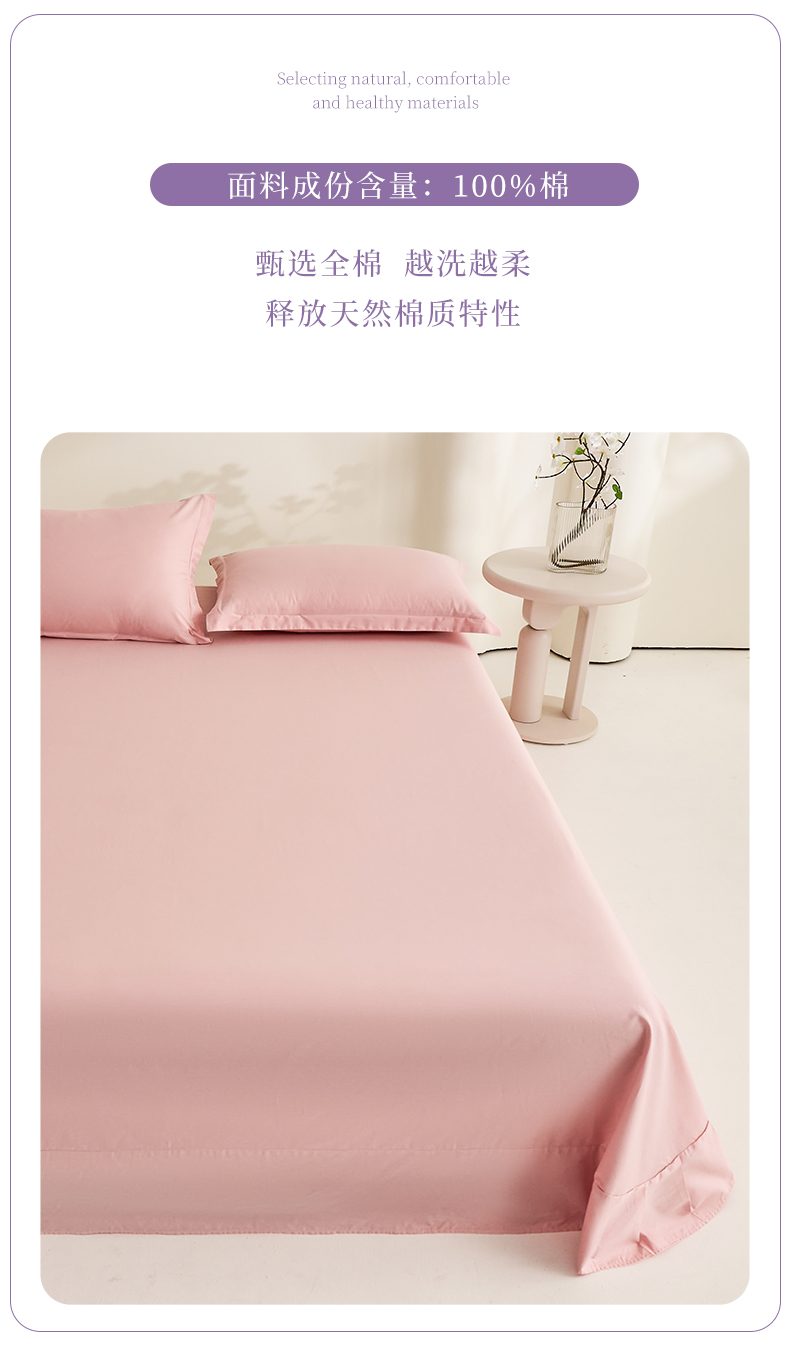 元元家居(元元被业) 2026新款全棉纯棉13372套件及单品【纯色款】-单床单床单单件 果粉
