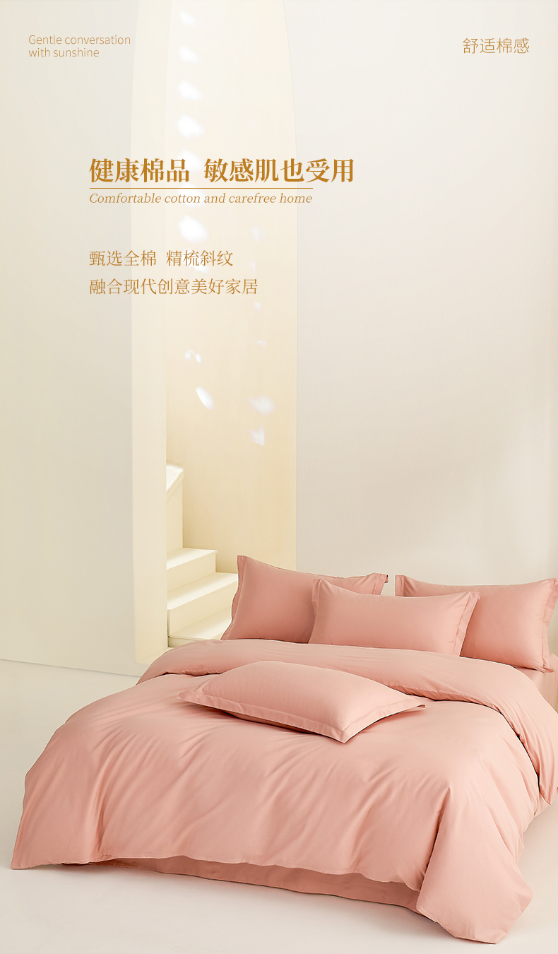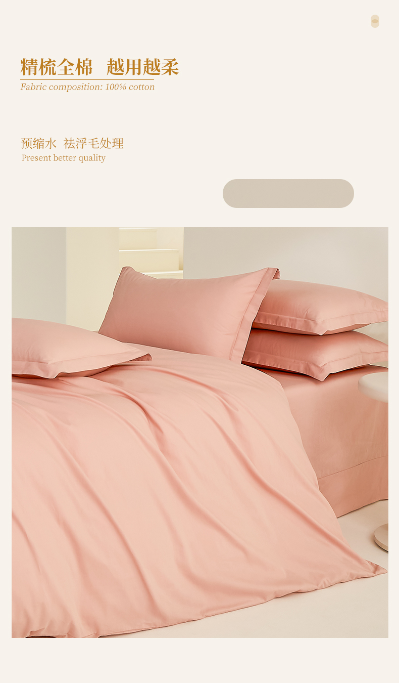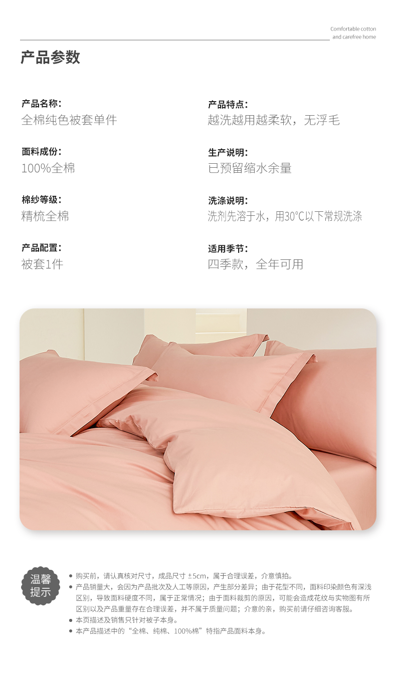 商品名称:元元家居(元元被业) 2026新款全棉纯棉13372套件及单品【纯色款】-单被套被套单件 炫彩粉