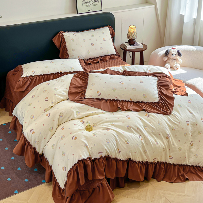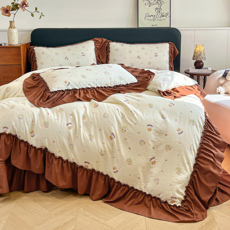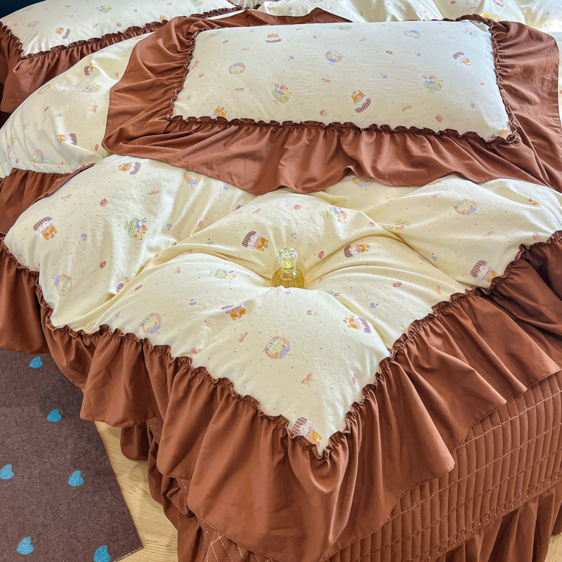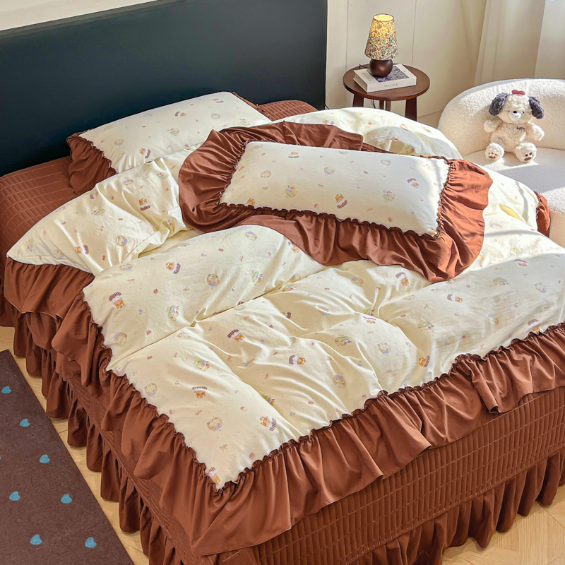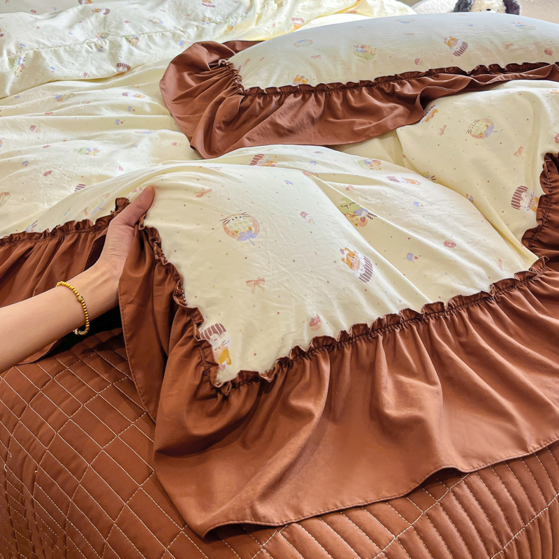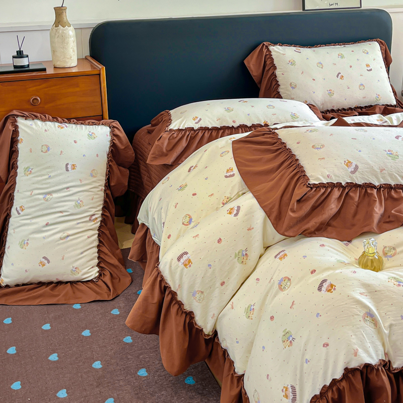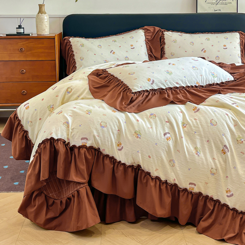 尚美 2026新款法式复古大花边仿棉床盖四件套 卡通动漫