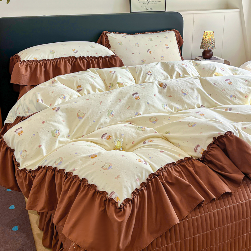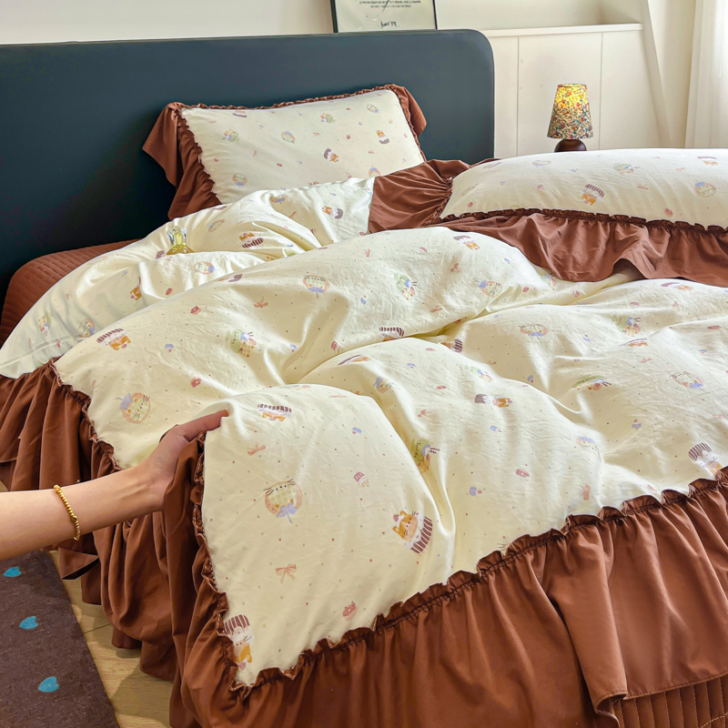 商品名称:尚美 2026新款法式复古大花边仿棉床盖四件套 卡通动漫