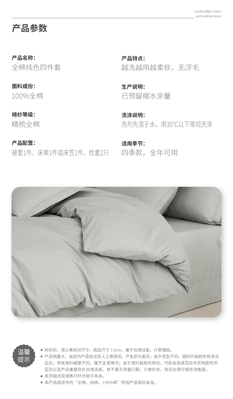 当前位置: 91家纺网 > 商品网购 > 床品套件 > 四件套 > 全棉普通四件套 > 元元家居(元元被业) 2026新款全棉纯棉13372纯色四件套系列 雅灰