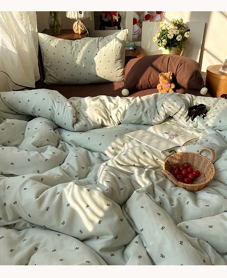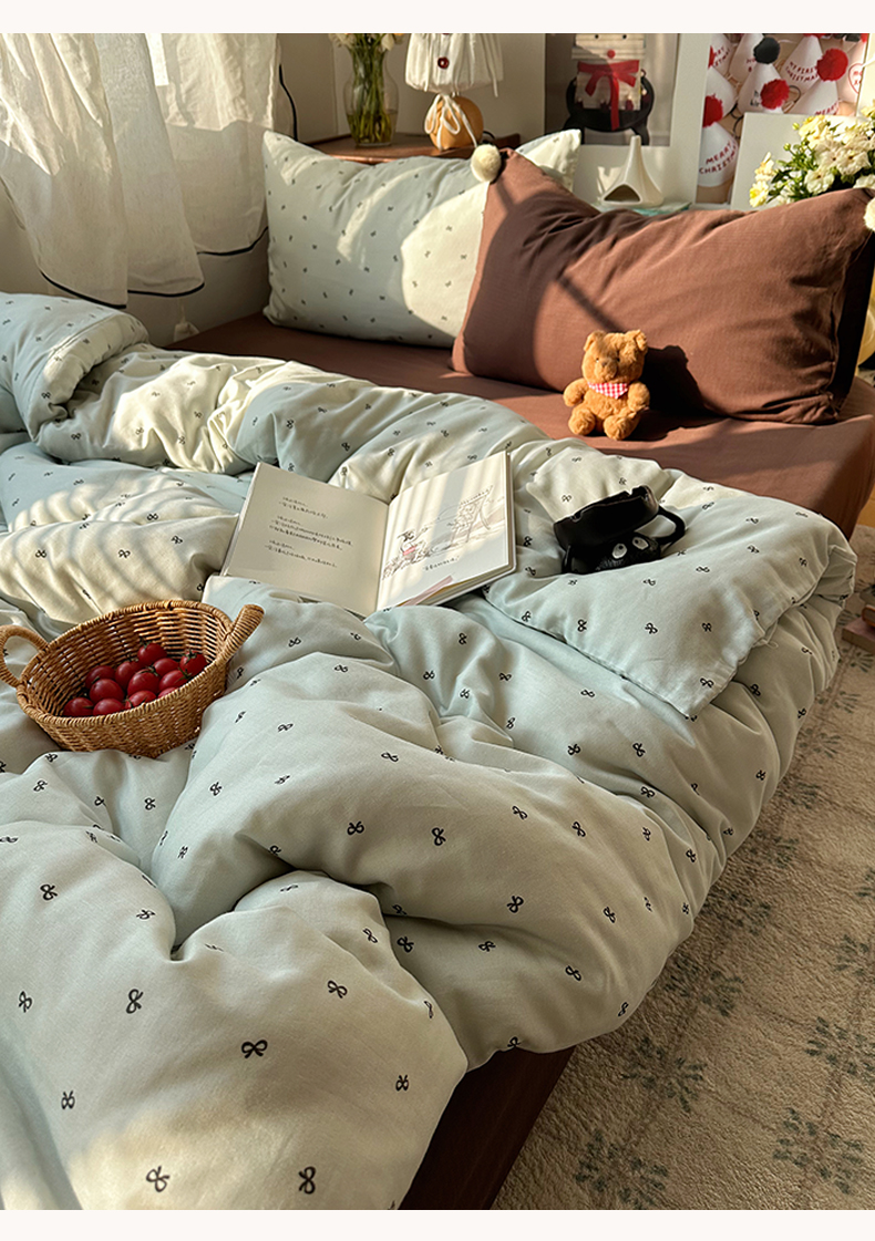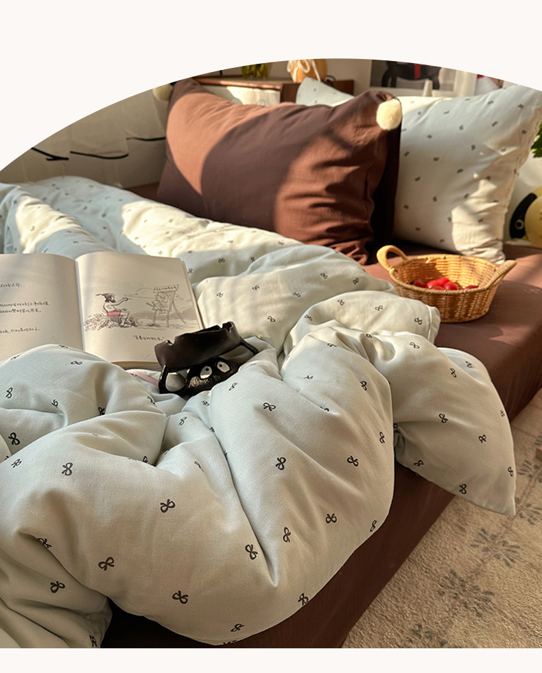 当前位置: 91家纺网 > 商品网购 > 床品套件 > 四件套 > 全棉普通四件套 > 三朵家纺 2026新款全棉纯棉双层纱小毛球系列四件套 蝴蝶结-蓝