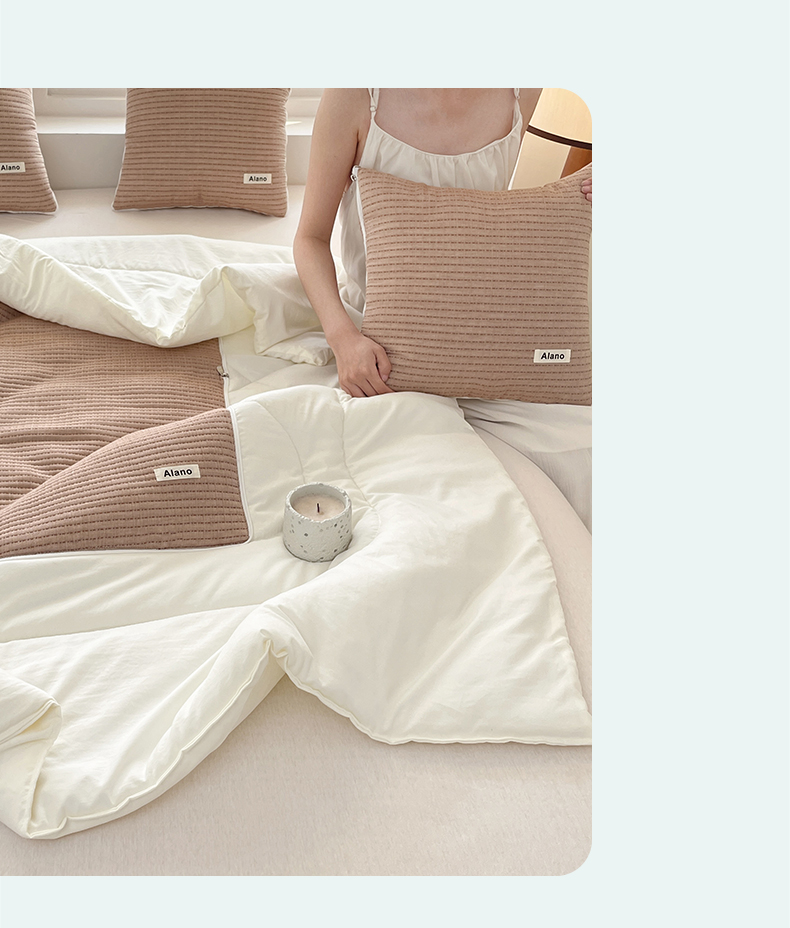 (总)番茄+ 2026新款春夏色织全棉极简主义抱枕被,组合图仅供参考不可下单,冰淇淋色,莫兰迪灰,浅咖,深咖,鼠尾草绿