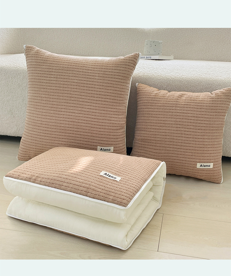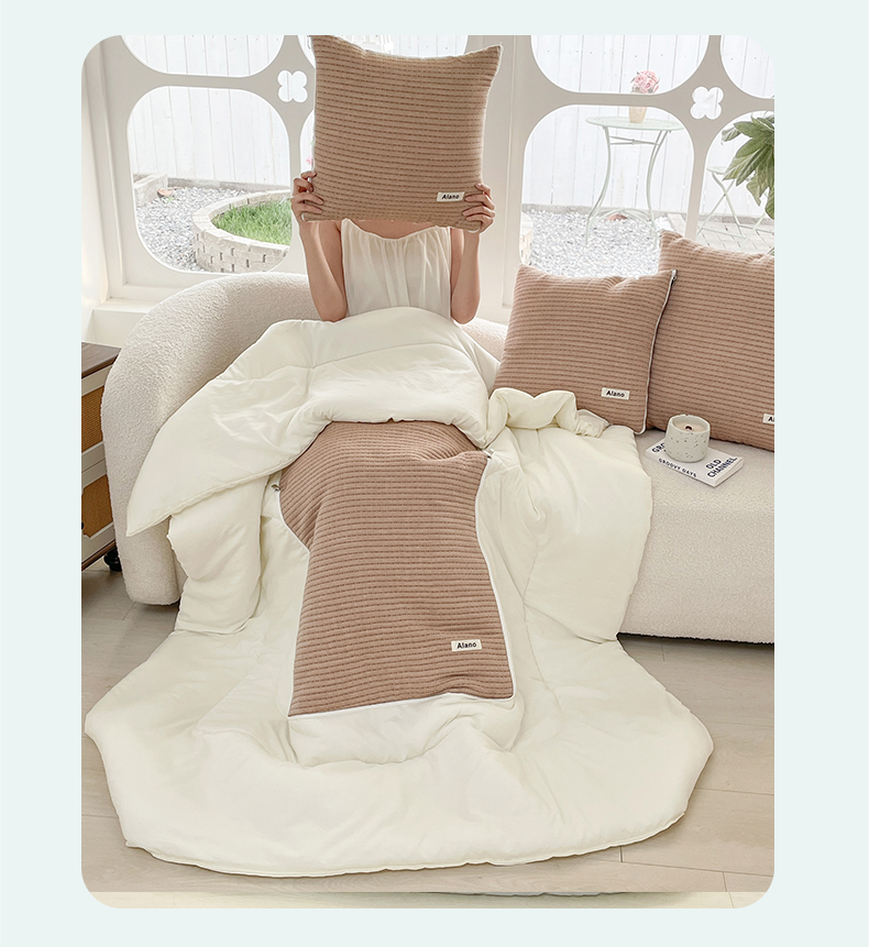 番茄+ 2026新款春夏色织全棉极简主义抱枕被 深咖