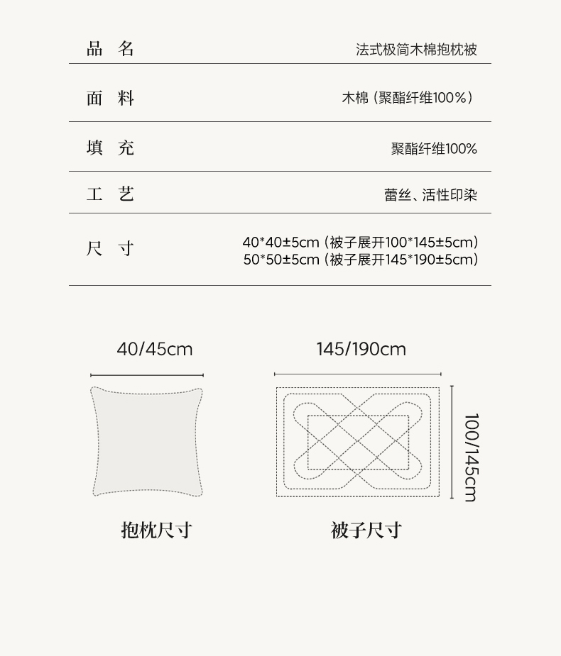 40x40±5cm(被子展开100x145±5cm)