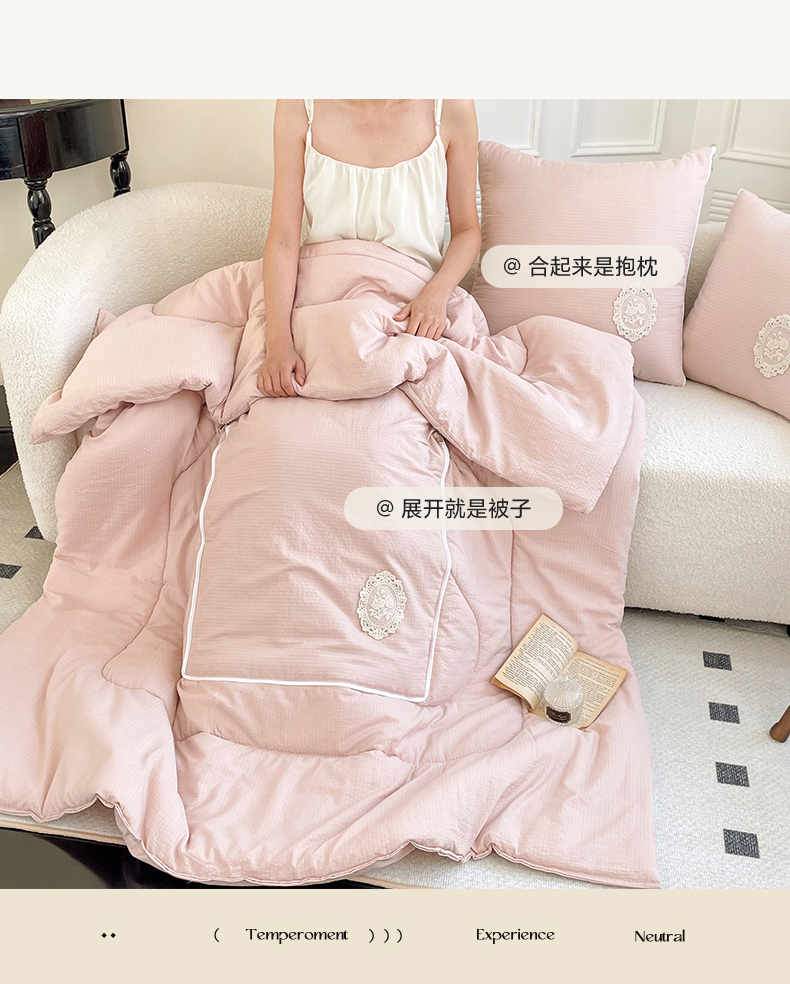 番茄+ 2026新款法式极简抱枕被 法式极简—蜜桃粉