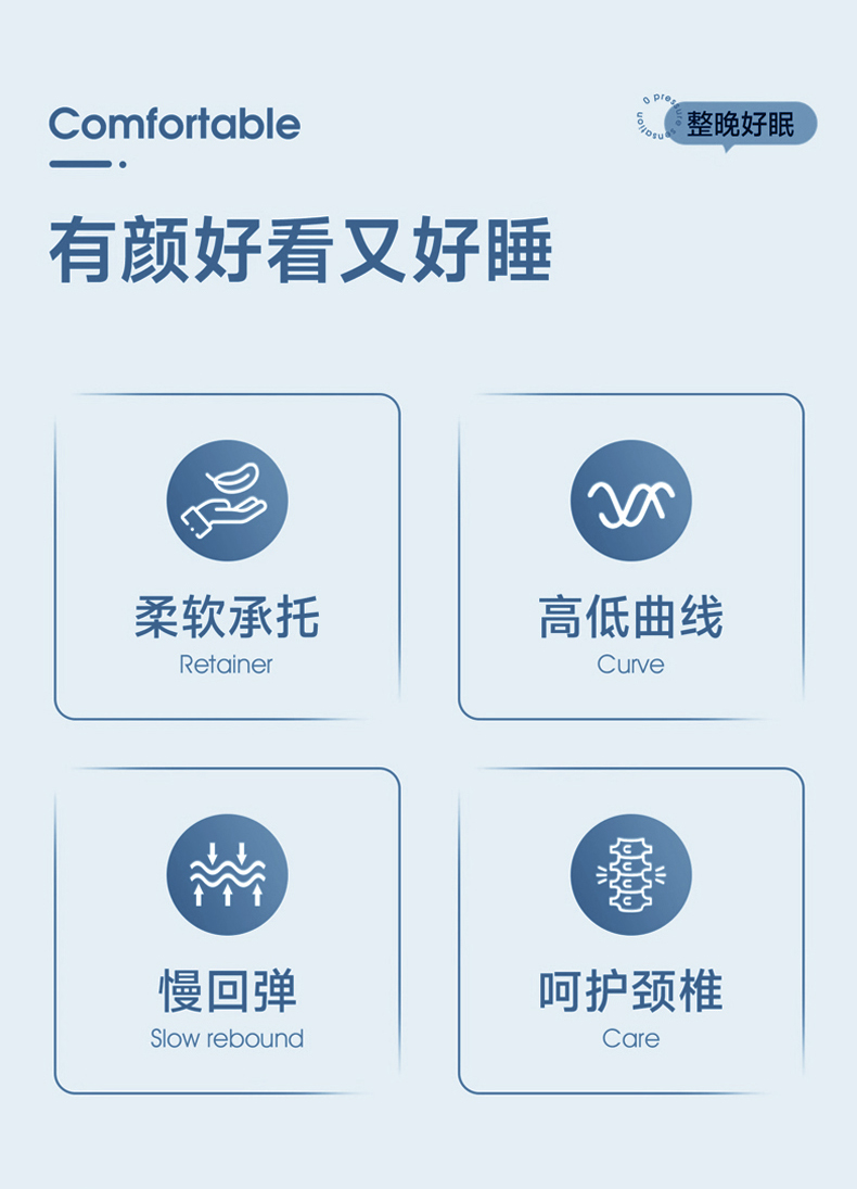 (总)七夜居 2026新款猫肚皮枕芯猫肚枕记忆枕蛋黄枕 枕头枕芯,黄色,浅蓝,浅玉